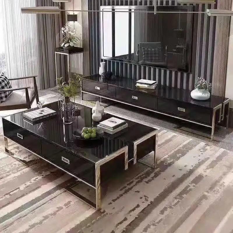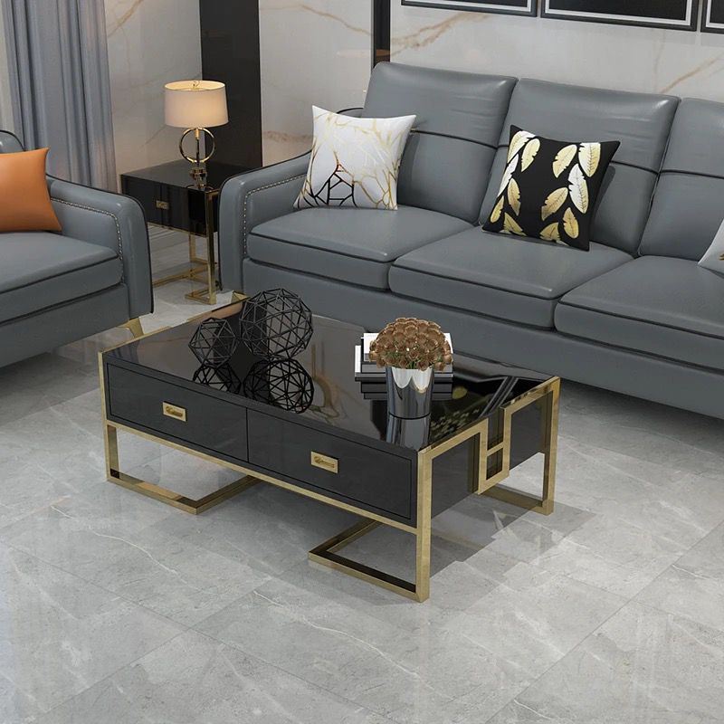Asma magasfényű fekete és króm  színű art deco stílusú dohányzóasztal. Az asztallapon temperált üveg asztallap van .