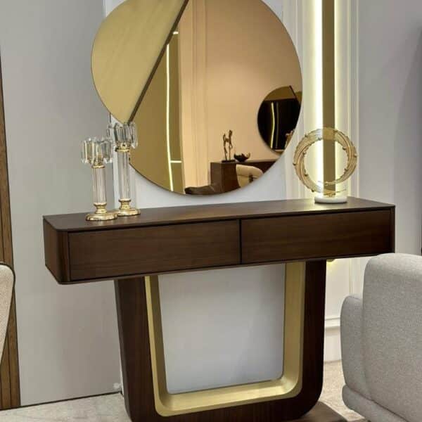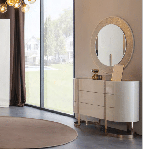 • Aura konzol / fésülködőasztal + kerek tükör - krém & bronz 821,000 Ft