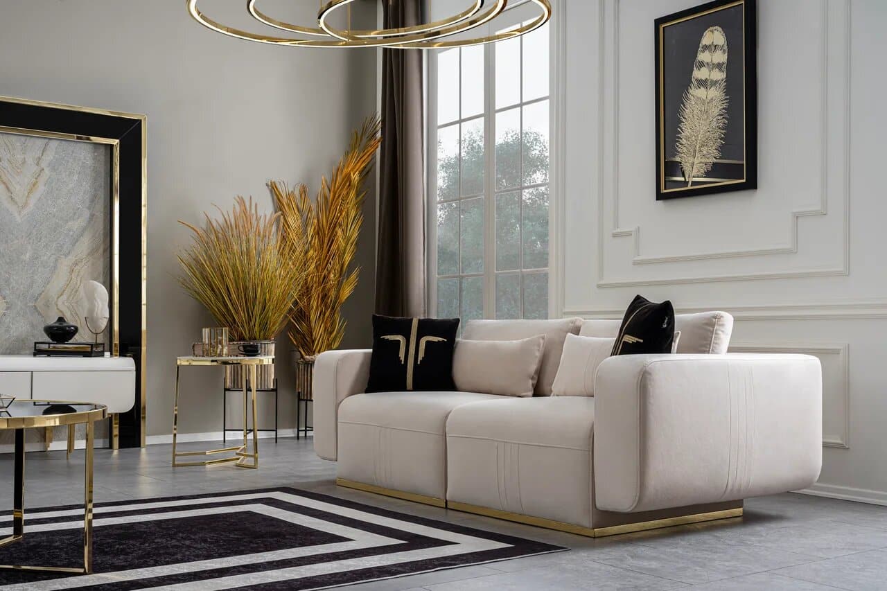 Aston kettőszemélyes kanapé – krém & arany
