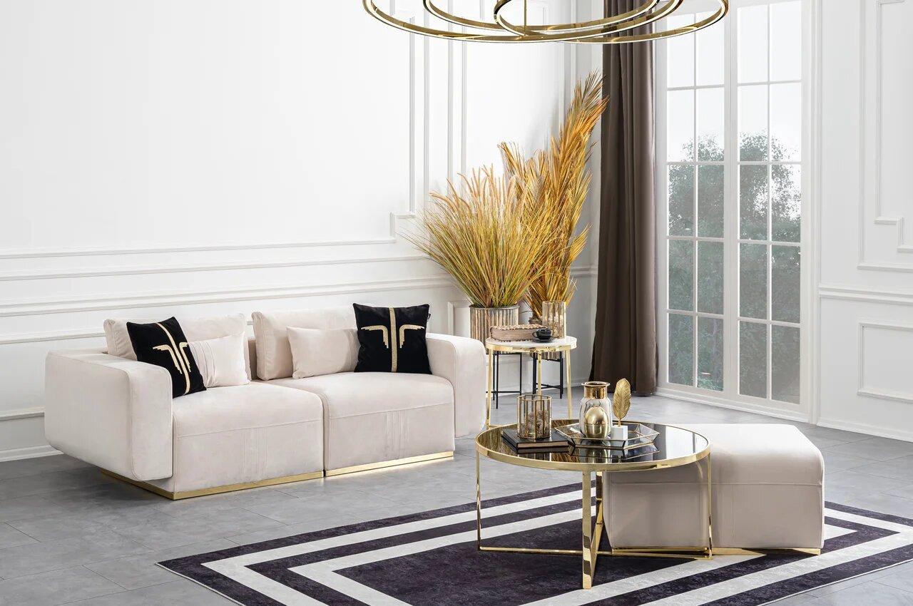 Aston háromszemélyes kanapé – krém & arany