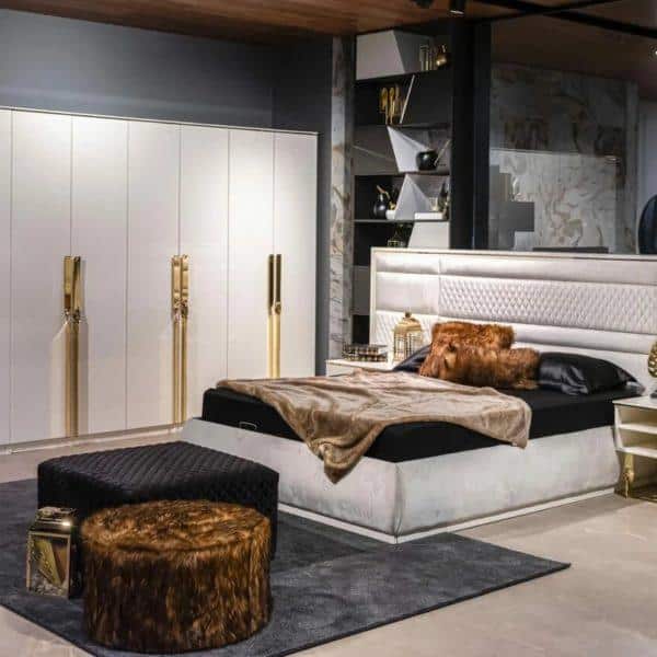 Aston hálószoba szekrény – arany & fehér