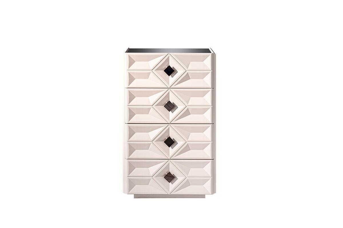 Asus 4 fiókos lerakó, fehér színű & tükör a lapja és króm láb.