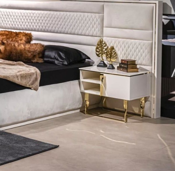 Aston fésülködő asztal / konzolasztal + puff – fehér & arany
