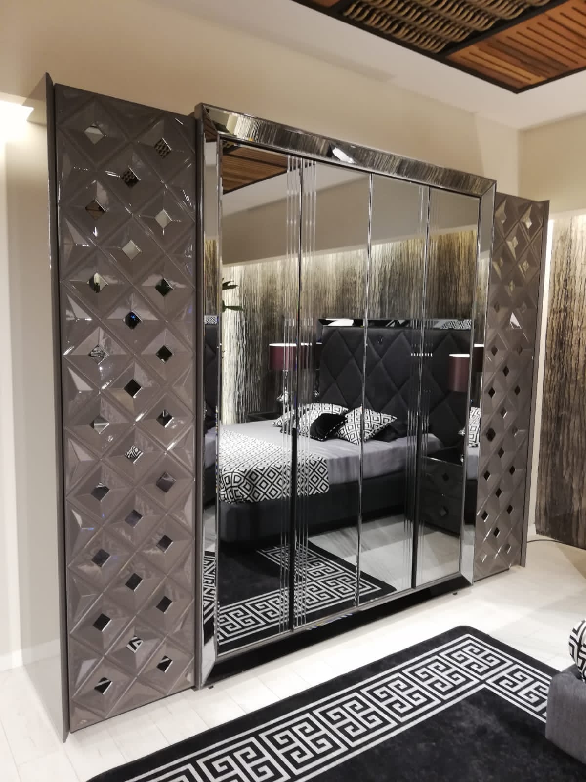 Asus Viona magasfényű szürke & króm gardróbszekrény.