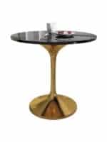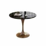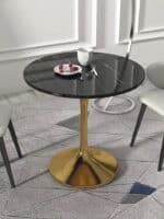 Carol Line kerek étkezőasztal agromerált fekete márványlappal & arany színű rozsdamentes láb.