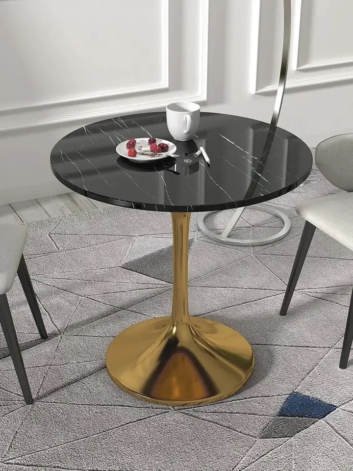 Kezdőlap Webshop Bútorok Asztal, konzol, lerakó Carol Line kerek étkezőasztal 80 cm – fekete márvány lap & arany
