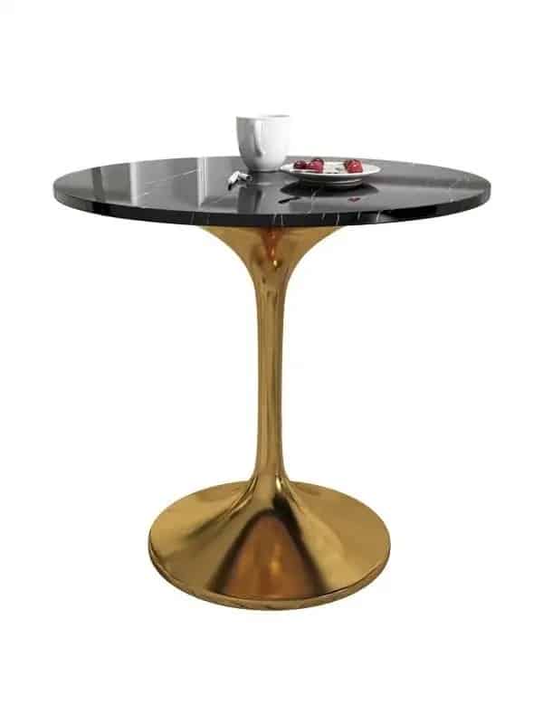 Carol Line kerek étkezőasztal 80 cm – fekete márvány lap & arany