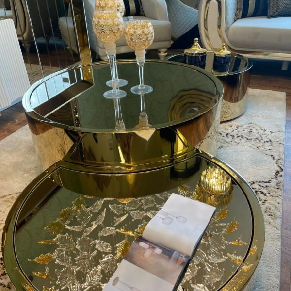 Cali Delhi dohányzóasztal 2 db – arany&fekete 100*100 50*35