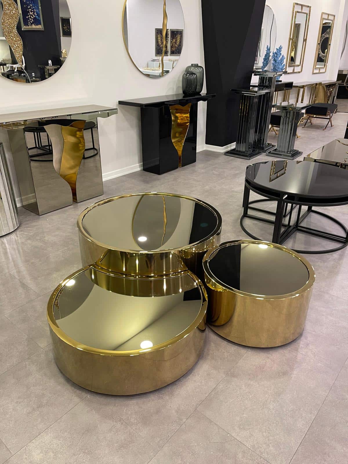 Kezdőlap Webshop Bútorok Asztal, konzol, lerakó Dohányzó asztal Ciceró tripla gold dohányzóasztal – 3 részes