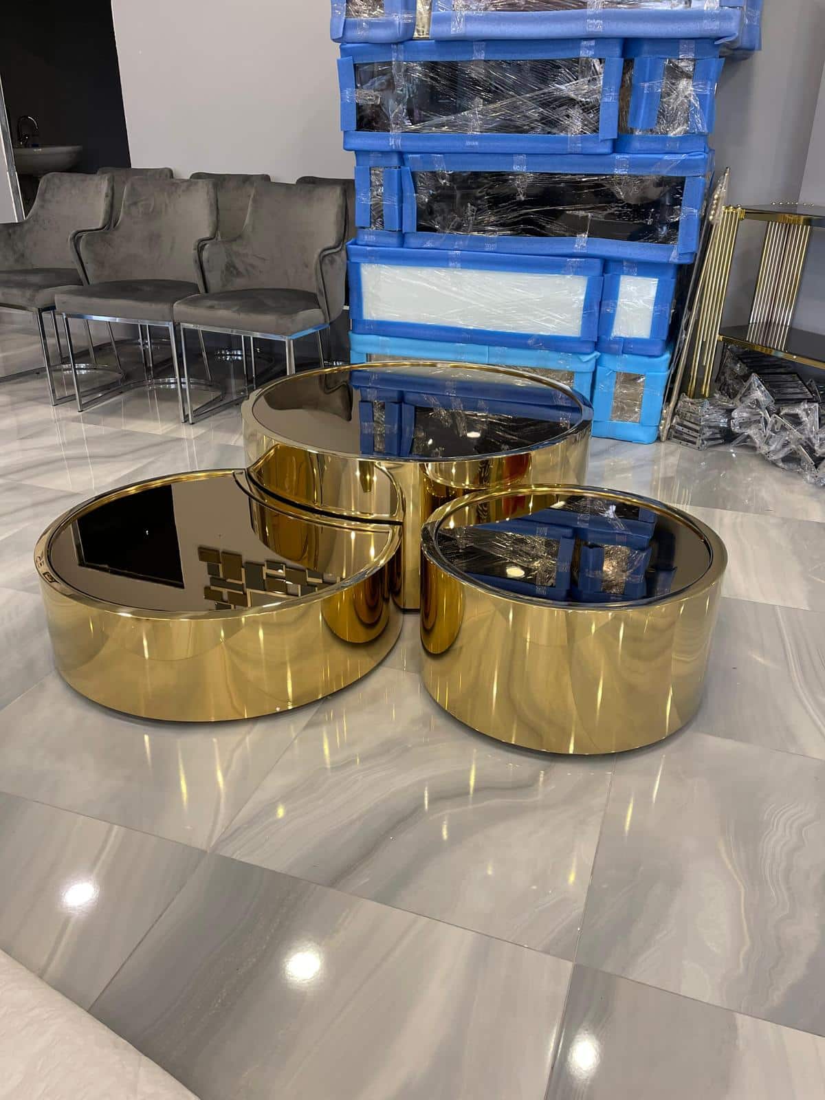 Ciceró 3 részes arany dohányzóasztal szett.