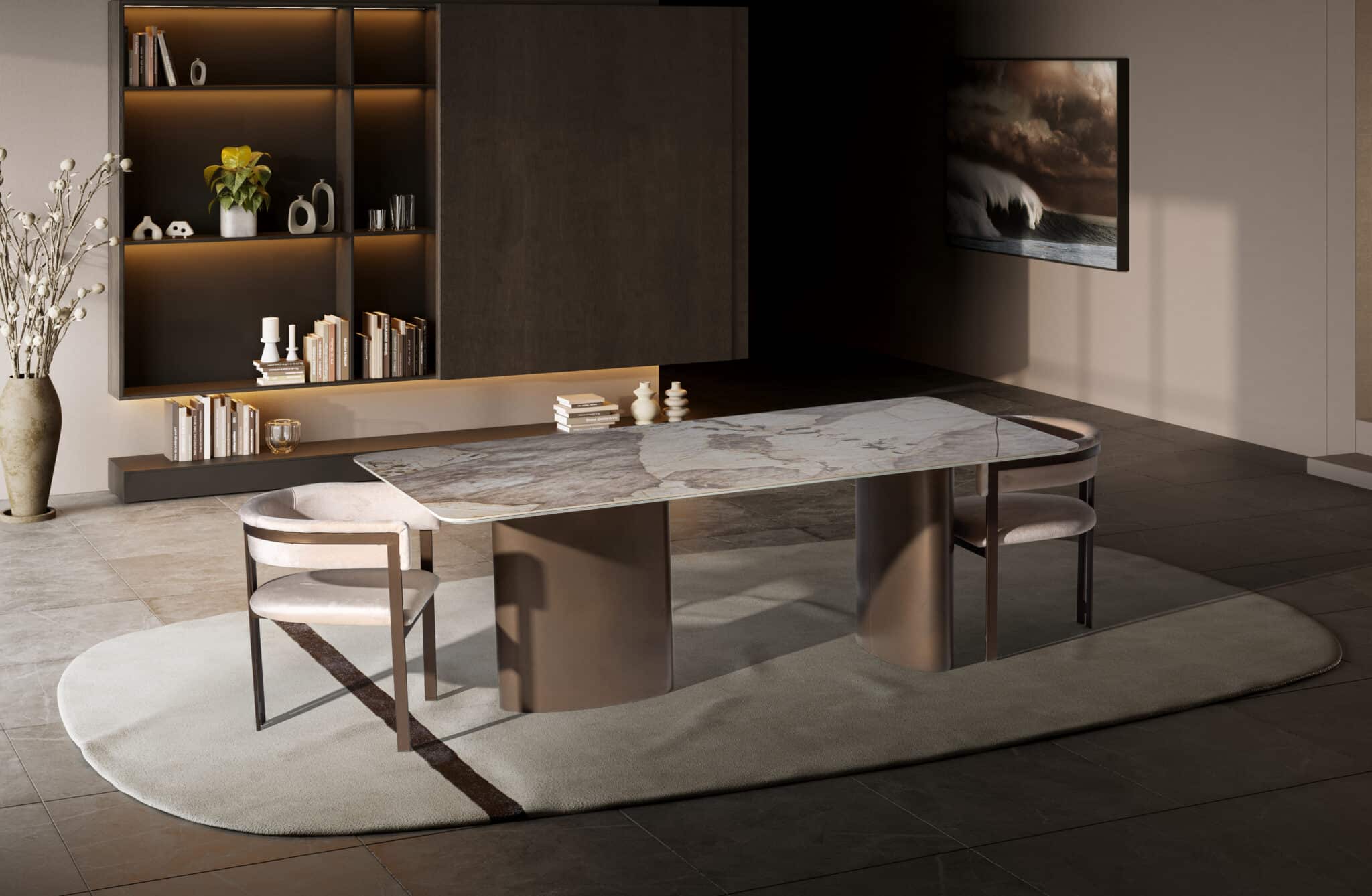 Kezdőlap Webshop Bútorok Asztal, konzol, lerakó Istanbul étkezőasztal Fém láb – Bézs kő hatású Porcelán asztallappal 220 cm