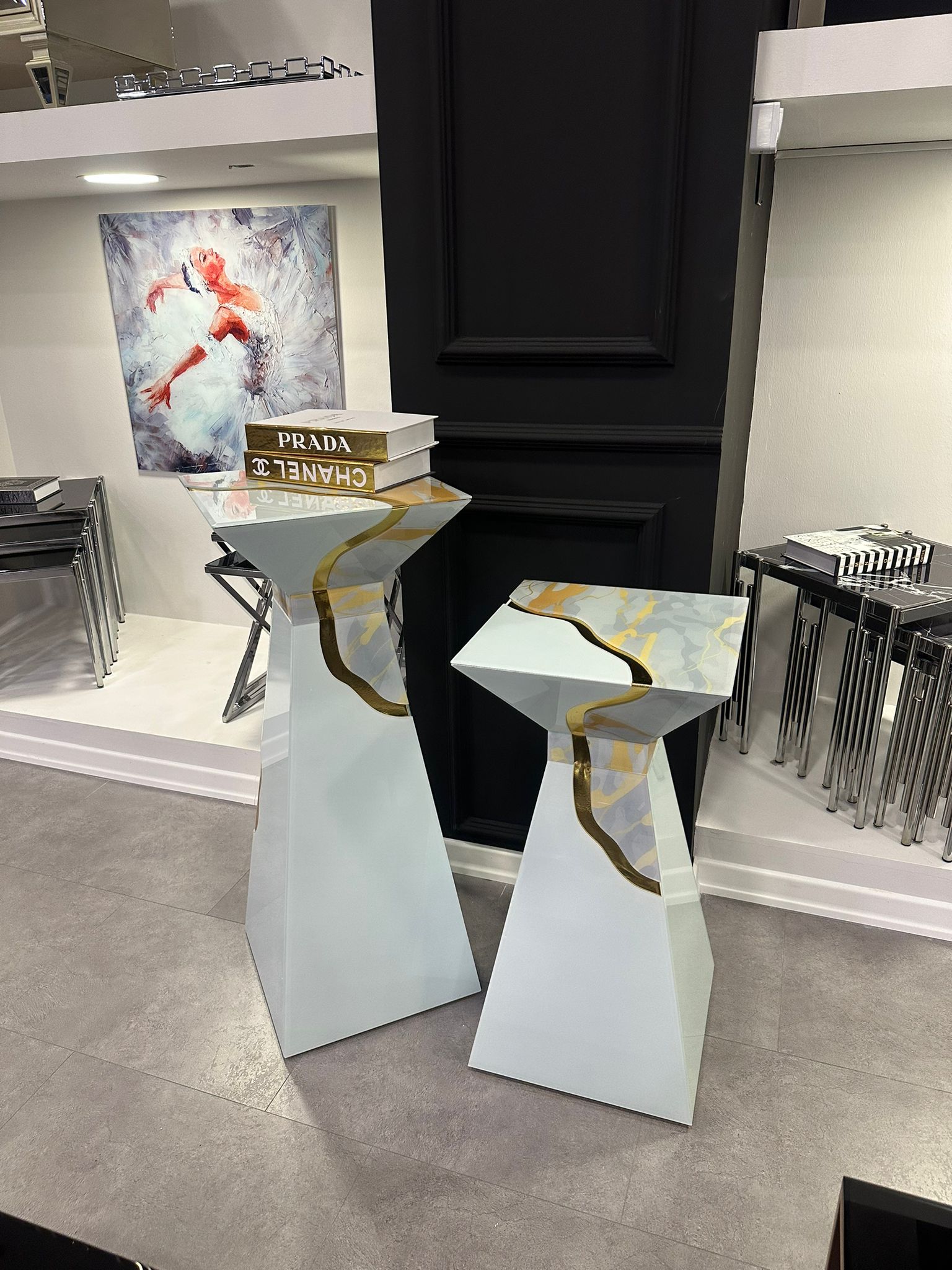 Citta arany & fehér & márvány mintás virágtartó, lerakóasztal 2 db.