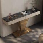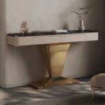 Steel Daniel kerámia lappal konzolasztal fekete,bézs&arany