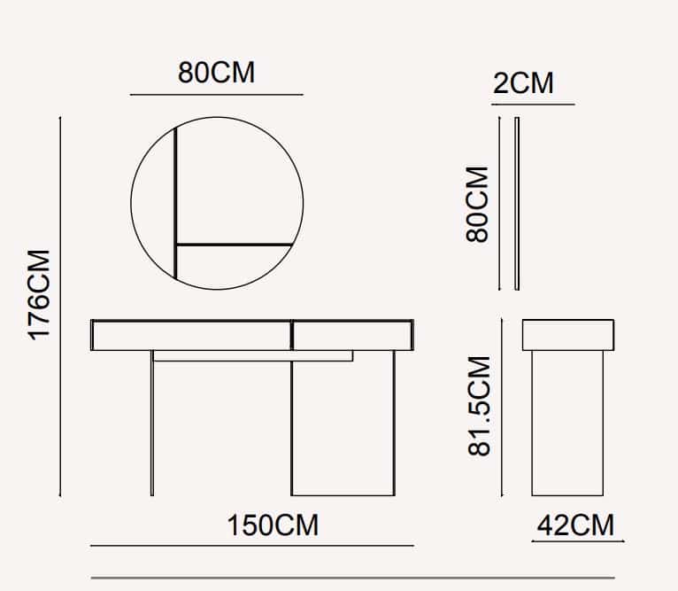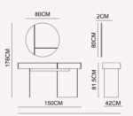 Méretek (szélesség x magasság x mélység): 150 x 81,5 x 42 cm