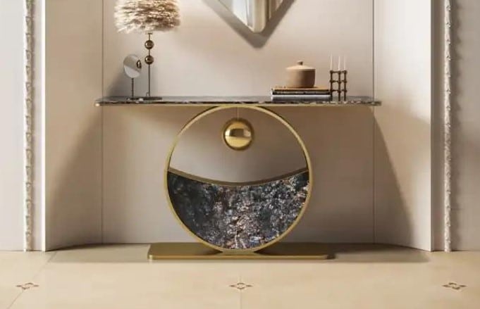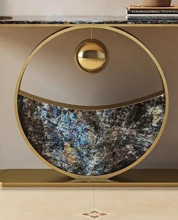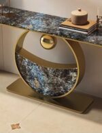 Kezdőlap Webshop Bútorok Asztal, konzol, lerakó Konzol asztal Jade kerámia lappal konzolasztal színes kék gránit&arany 120 cm