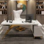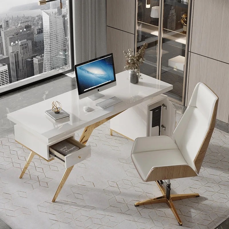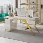 Office íróasztal MDF anyagból, magasfényű fehér & arany.