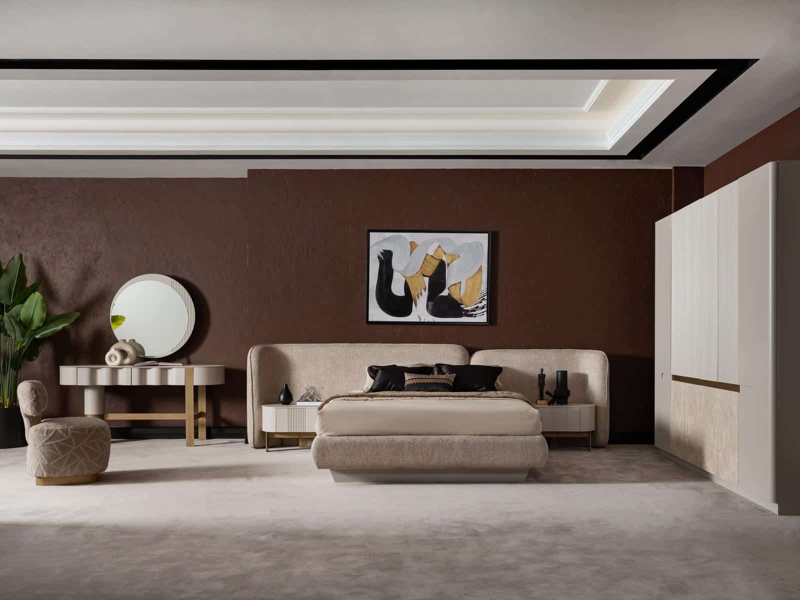 Porto gardróbszekrény, bézs, szálcsiszolt arany berakással