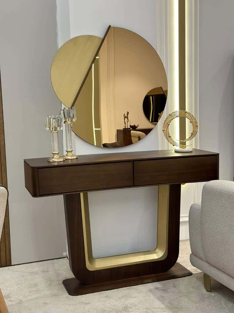 Siri konzolasztal American Walnut – Brass gold lábbal