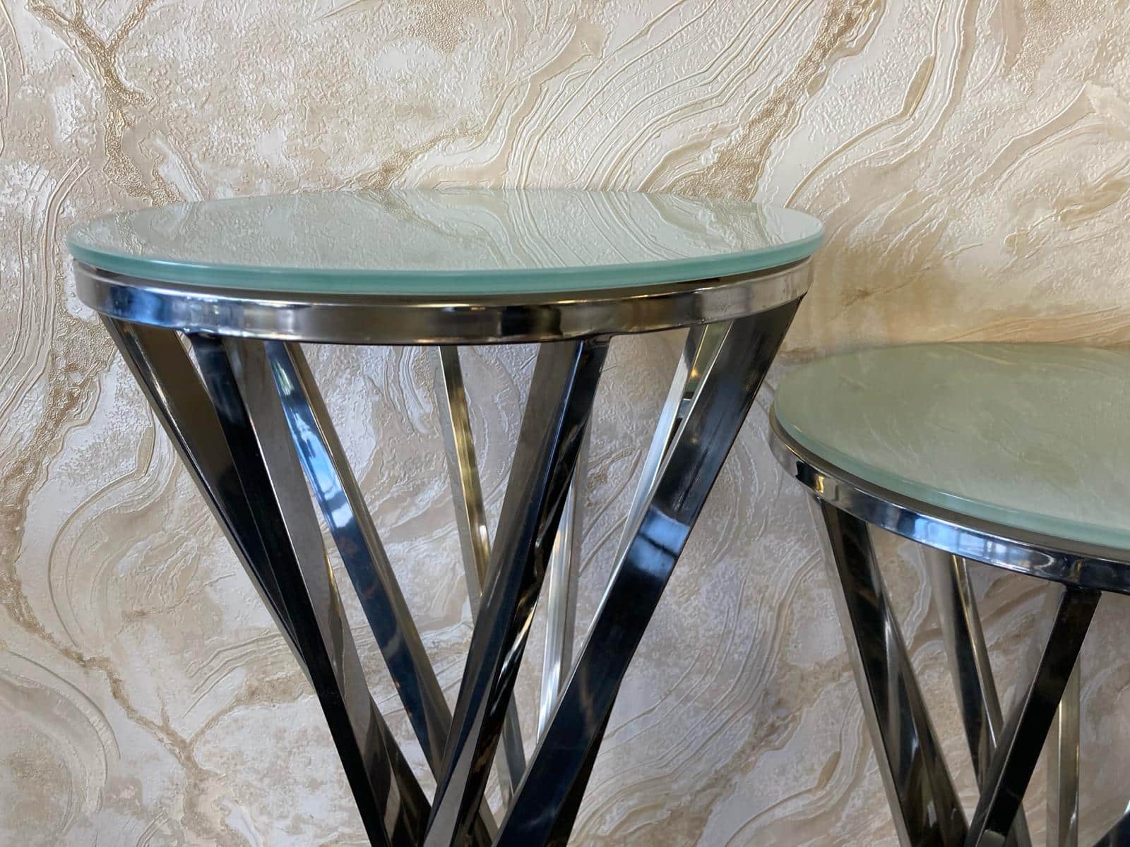 Kezdőlap Webshop Bútorok Asztal, konzol, lerakó Lerakó asztal Galileo virágállvány 3 db-os, króm és üveg – 70 cm -80 cm -90 cm