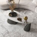 Carol Line kerek lerakóasztal, dohányzóasztal  agromerált fehér márványlappal & füst színű rozsdamentes láb.