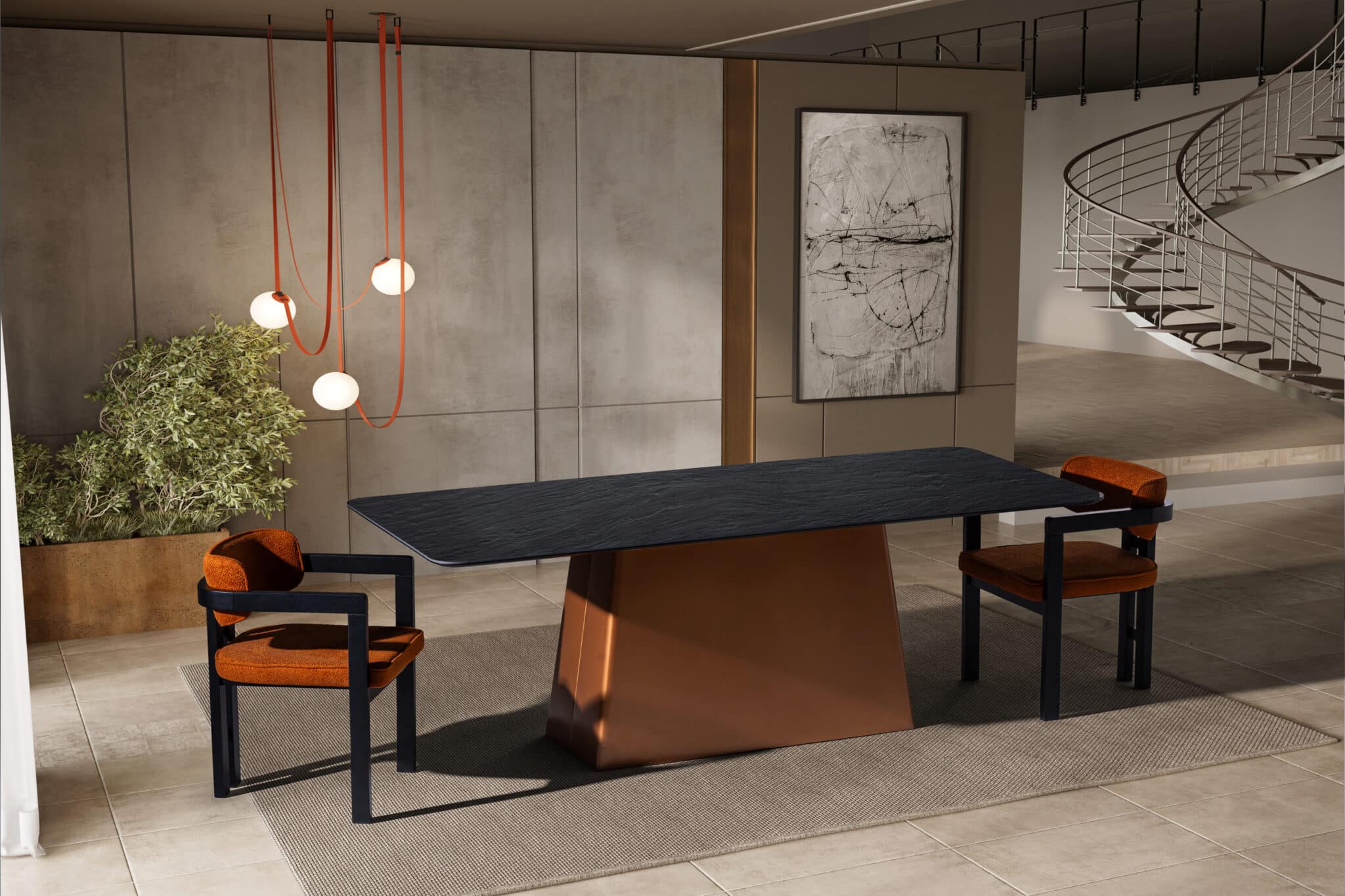 Madrid étkezőasztal Fém láb – Fekete kő hatású Porcelán asztallappal 215 cm