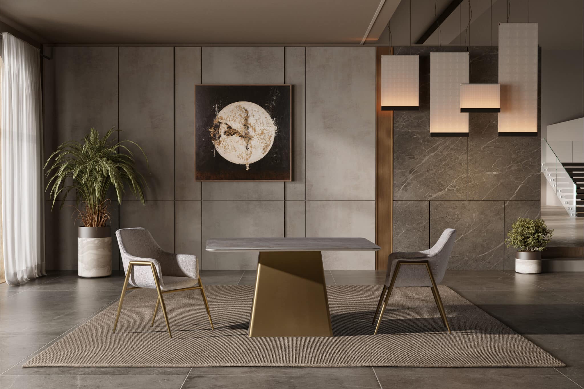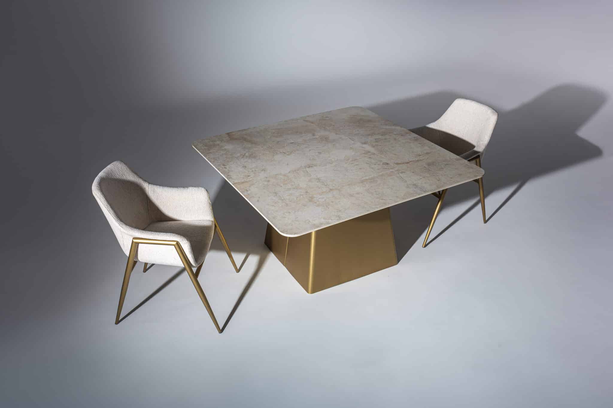 Kezdőlap Webshop Bútorok Étkezőasztal, étkezőszék Paris étkezőasztal Fém láb – Bézs kő hatású Porcelán asztallappal 140 cm