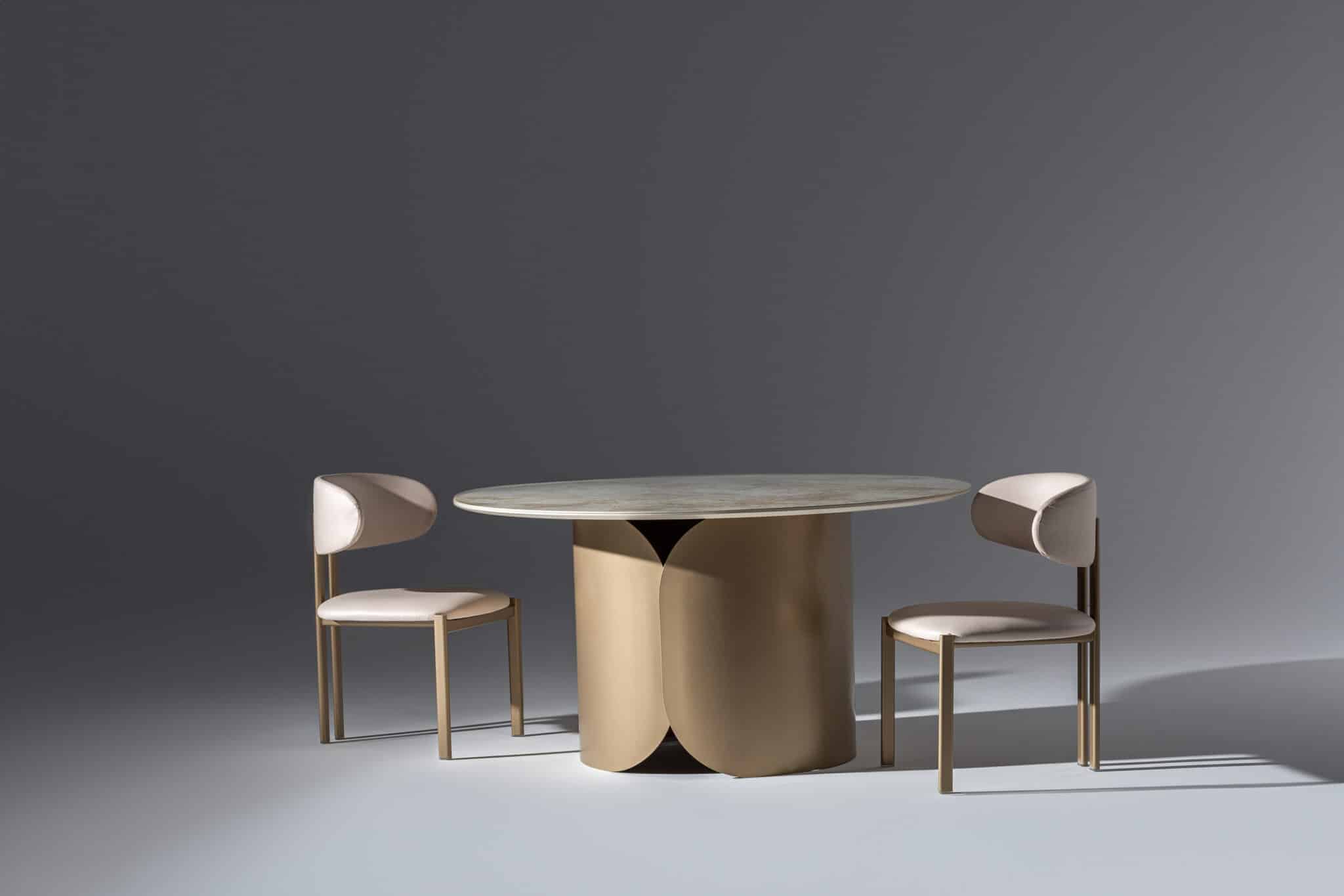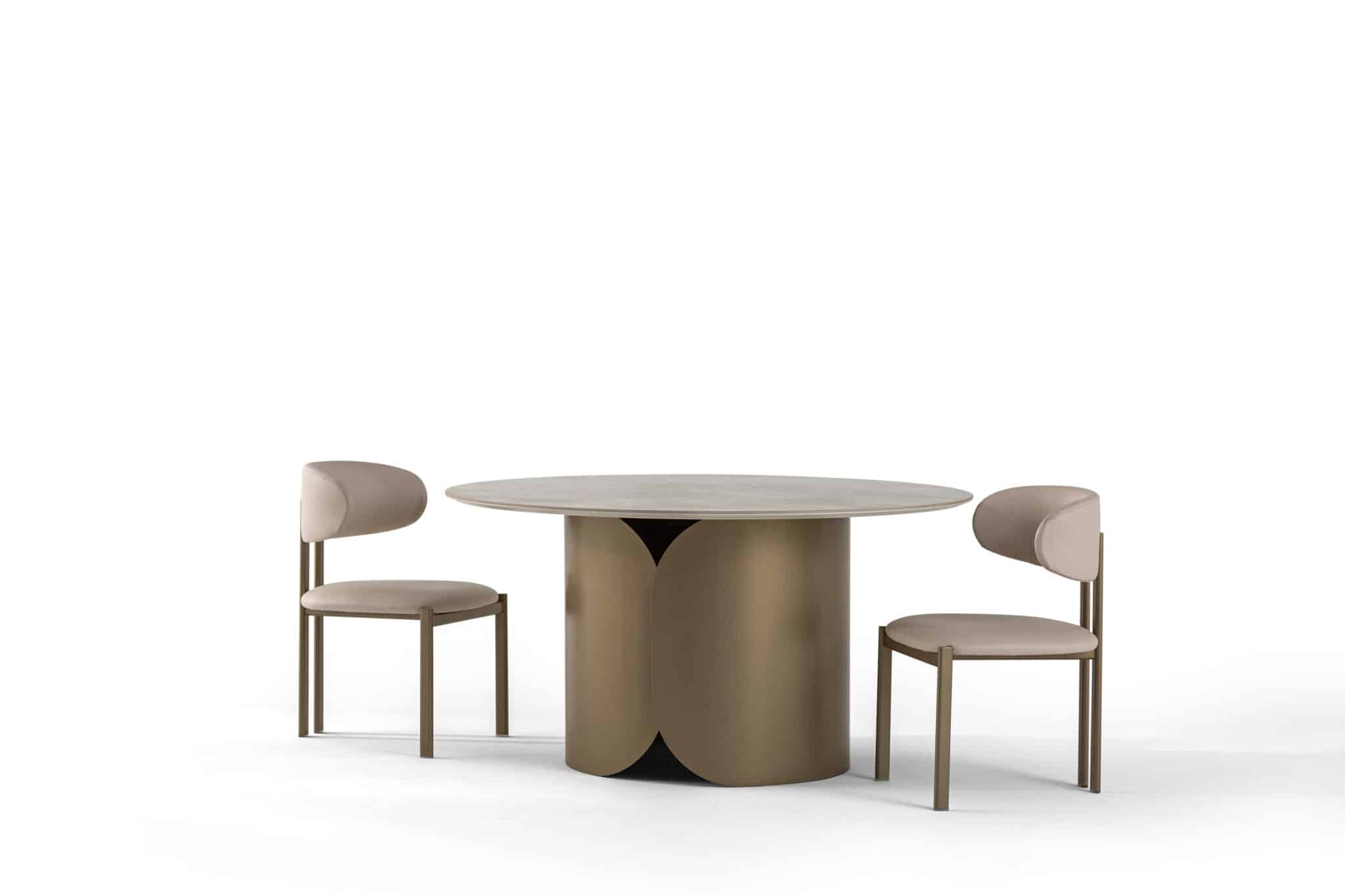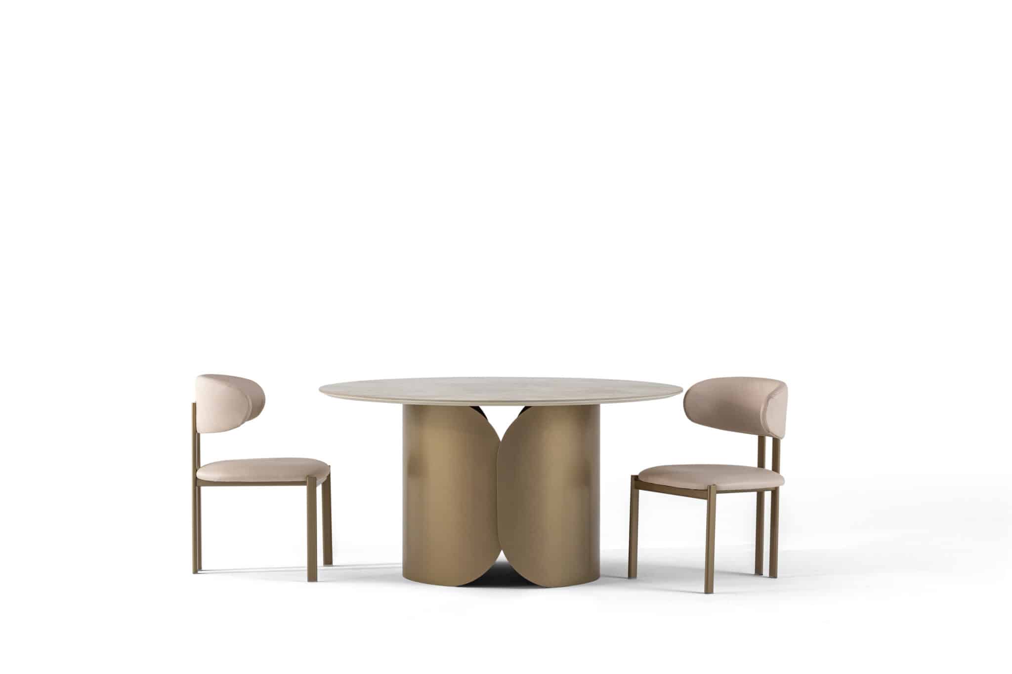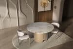 Fém láb – Bézs kő hatású Porcelán kör alakú asztallappal