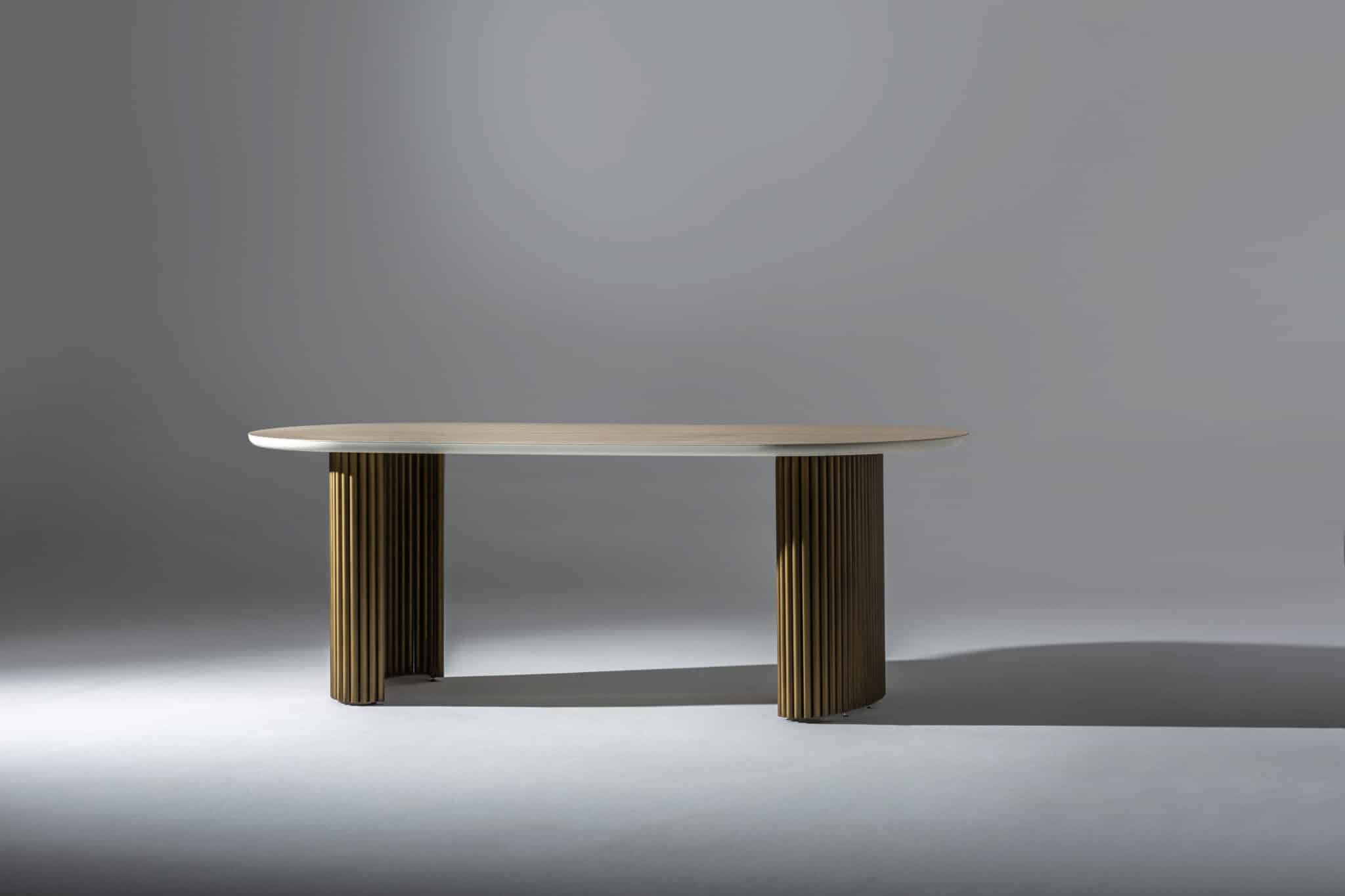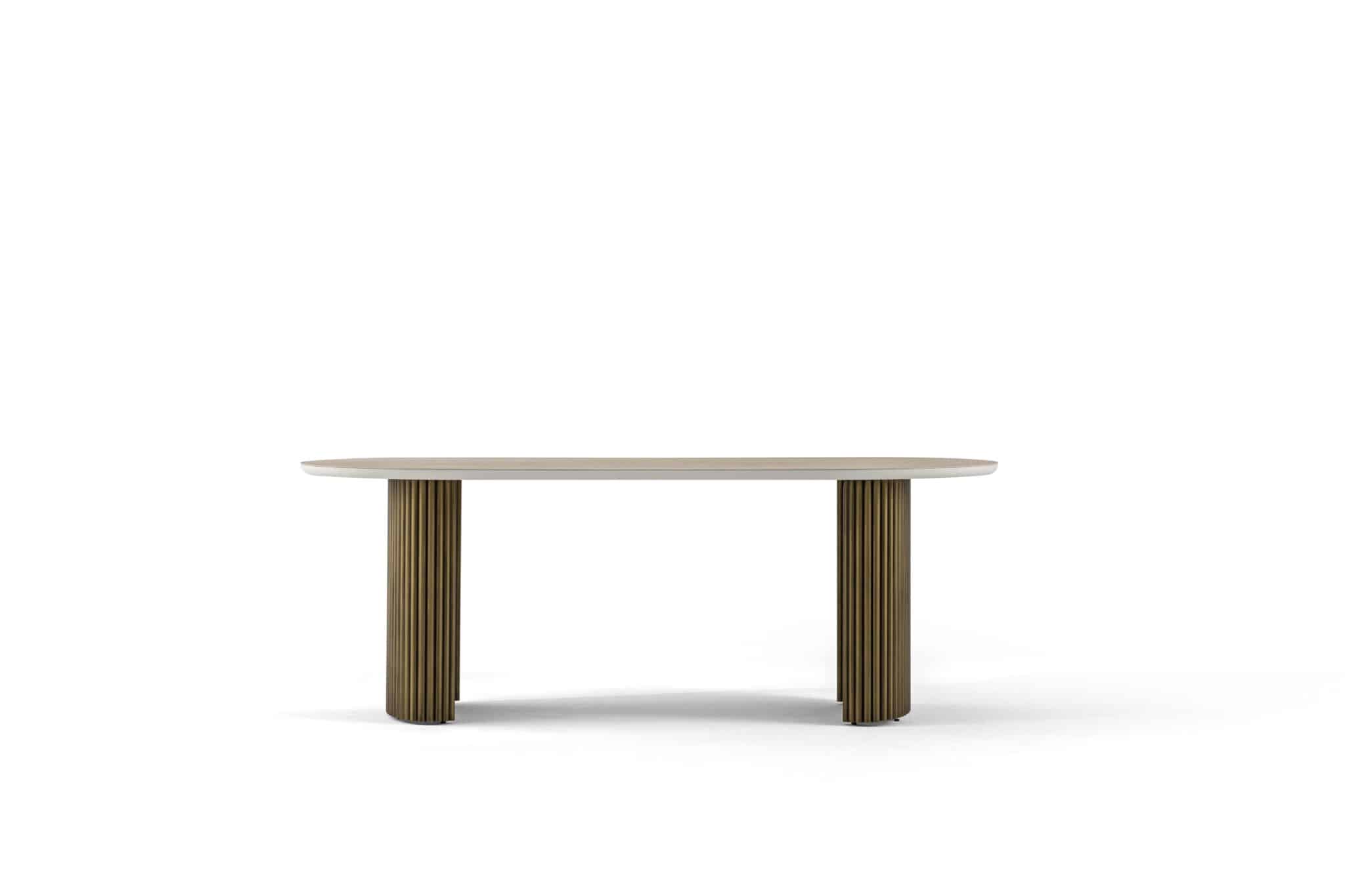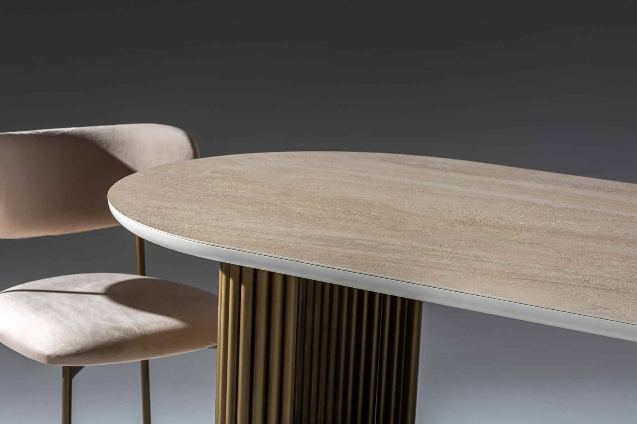 Fém bordázott láb – Bézs kő hatású Porcelán ovális alakú asztallappal