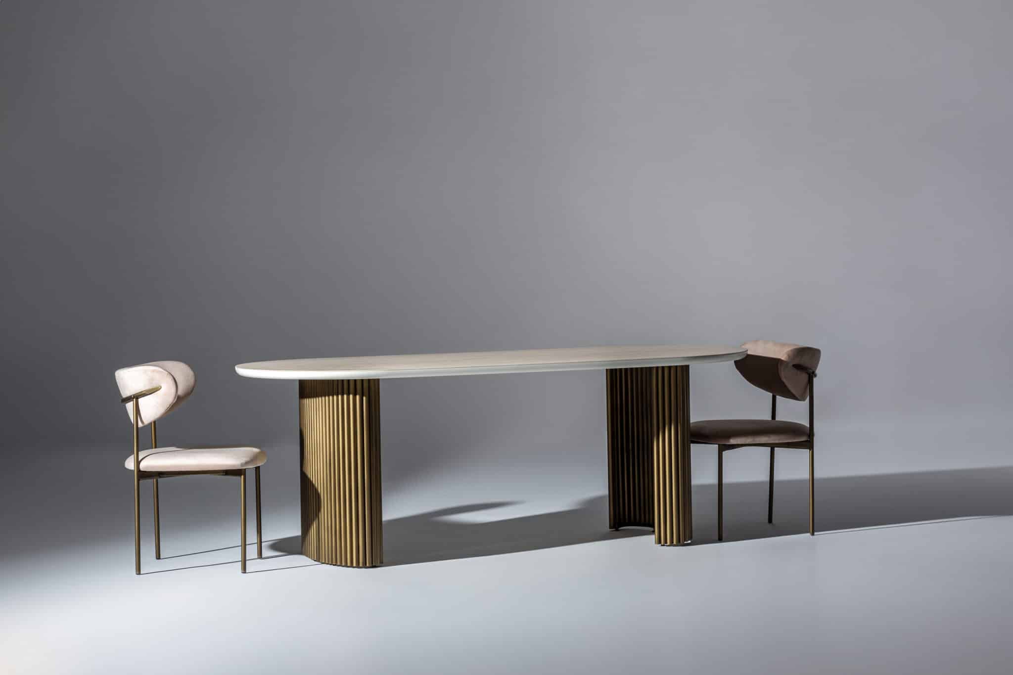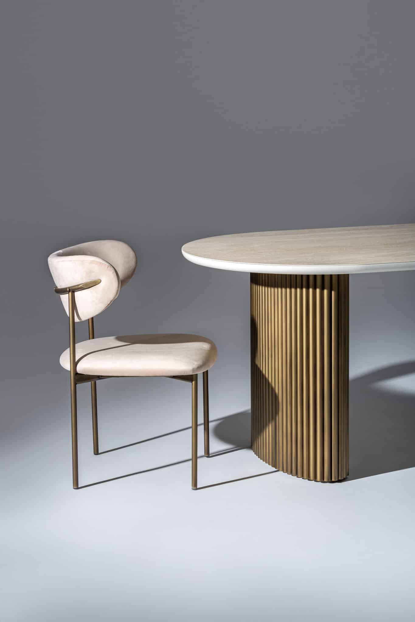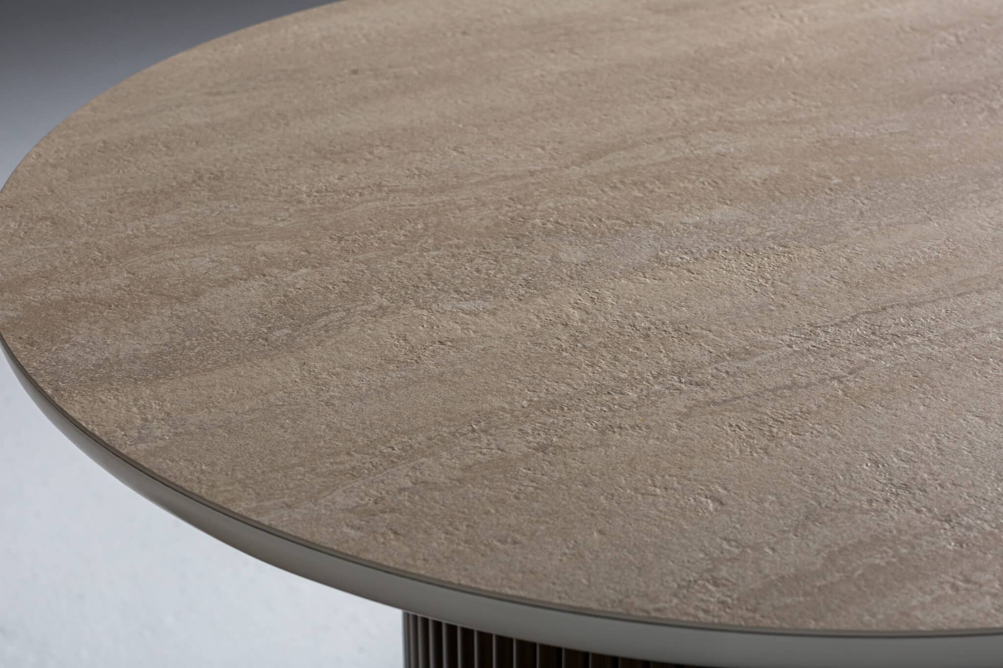 Fém bordázott láb – Bézs kő hatású Porcelán ovális alakú asztallappal