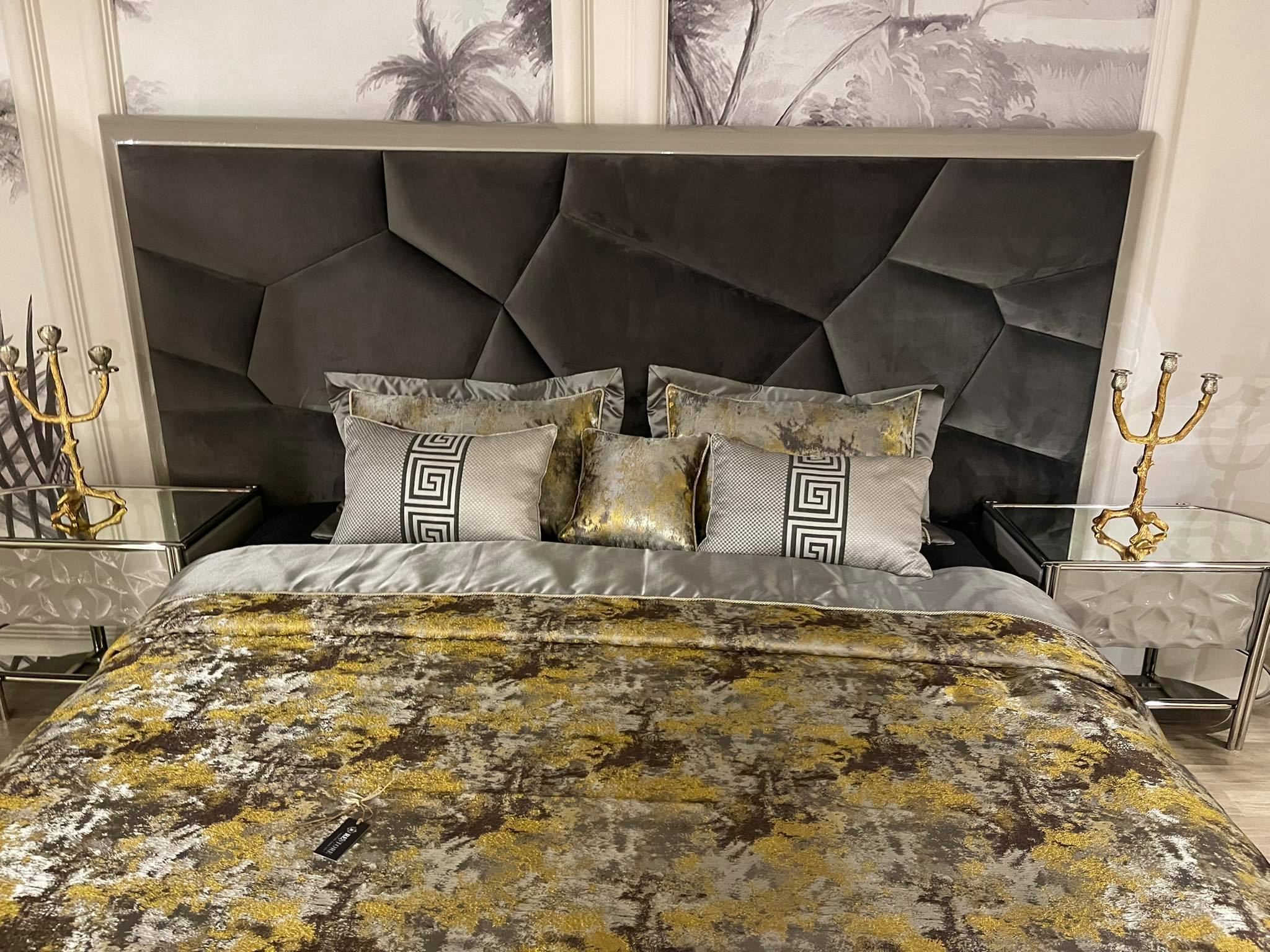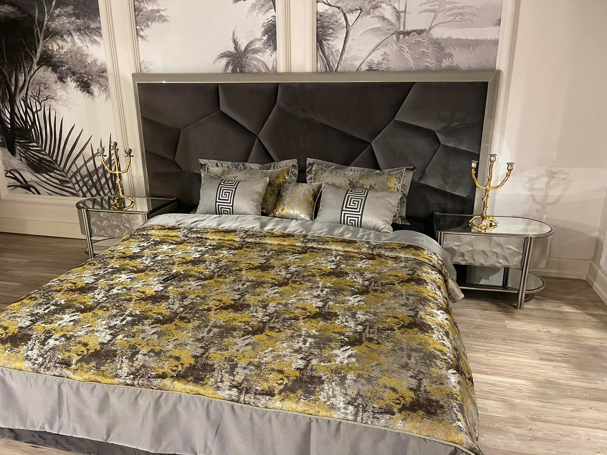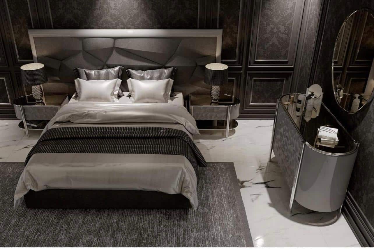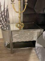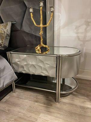 Calipso éjjeliszekrény magasfényű szürke & króm. Asztallap tükör.