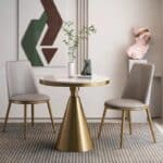 Carol kerek étkezőasztal , agromerált márványlap & arany színű rozsdamentes acél láb.