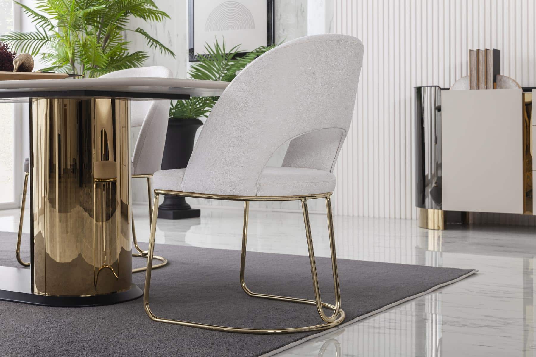 Kezdőlap Webshop Bútorok Étkezőasztal, étkezőszék Octo étkezőszék – fehér bolyhi & arany