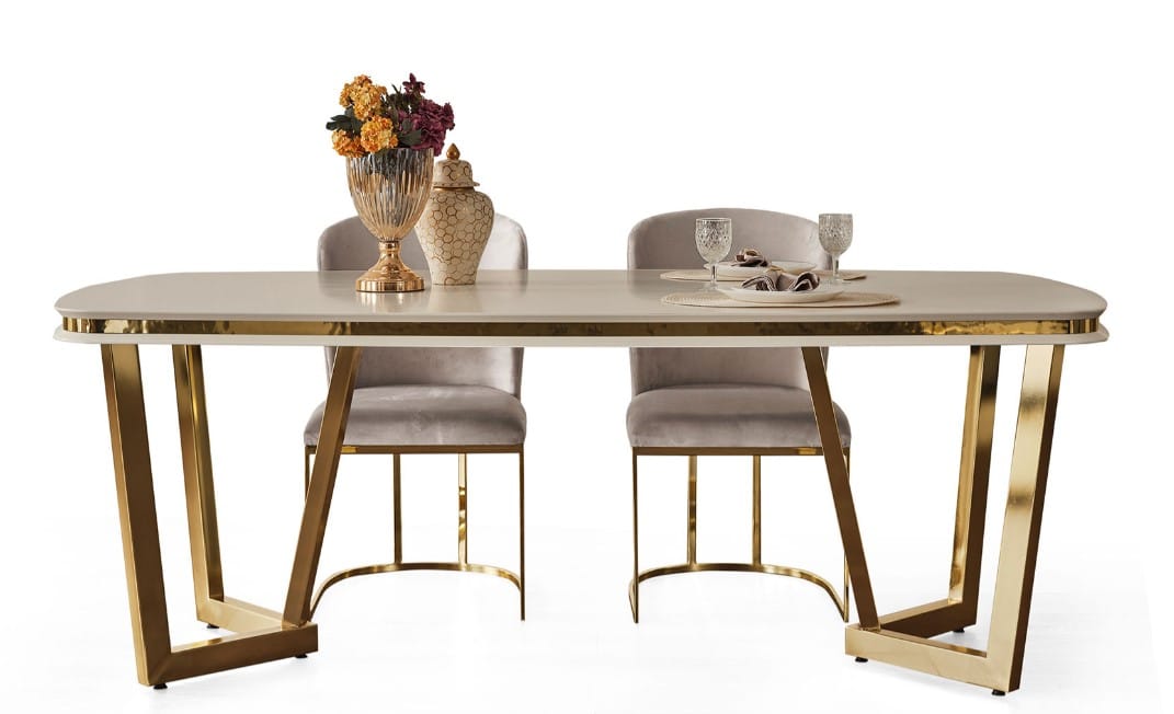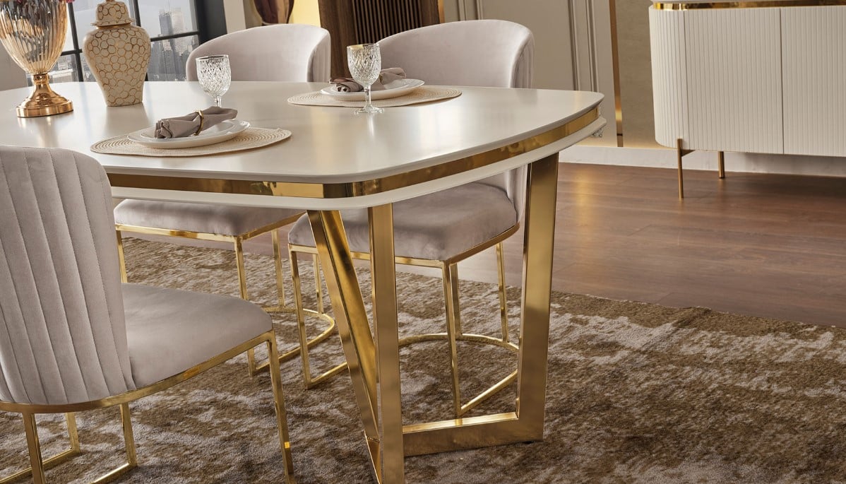 Kezdőlap Webshop Bútorok Étkezőasztal, étkezőszék Tesla étkezőasztal, fehér – arany 240 cm