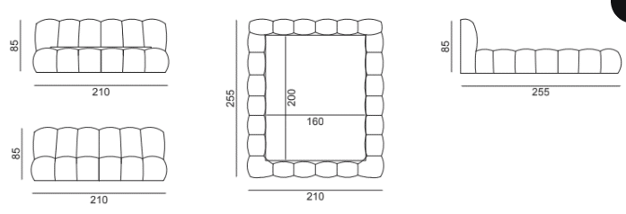 Matrac méret: 200 cm x 160 cm, ágy keret külső méret: 255 cm hosszú x 190 cm széles, háttámla magasság: 85 cm