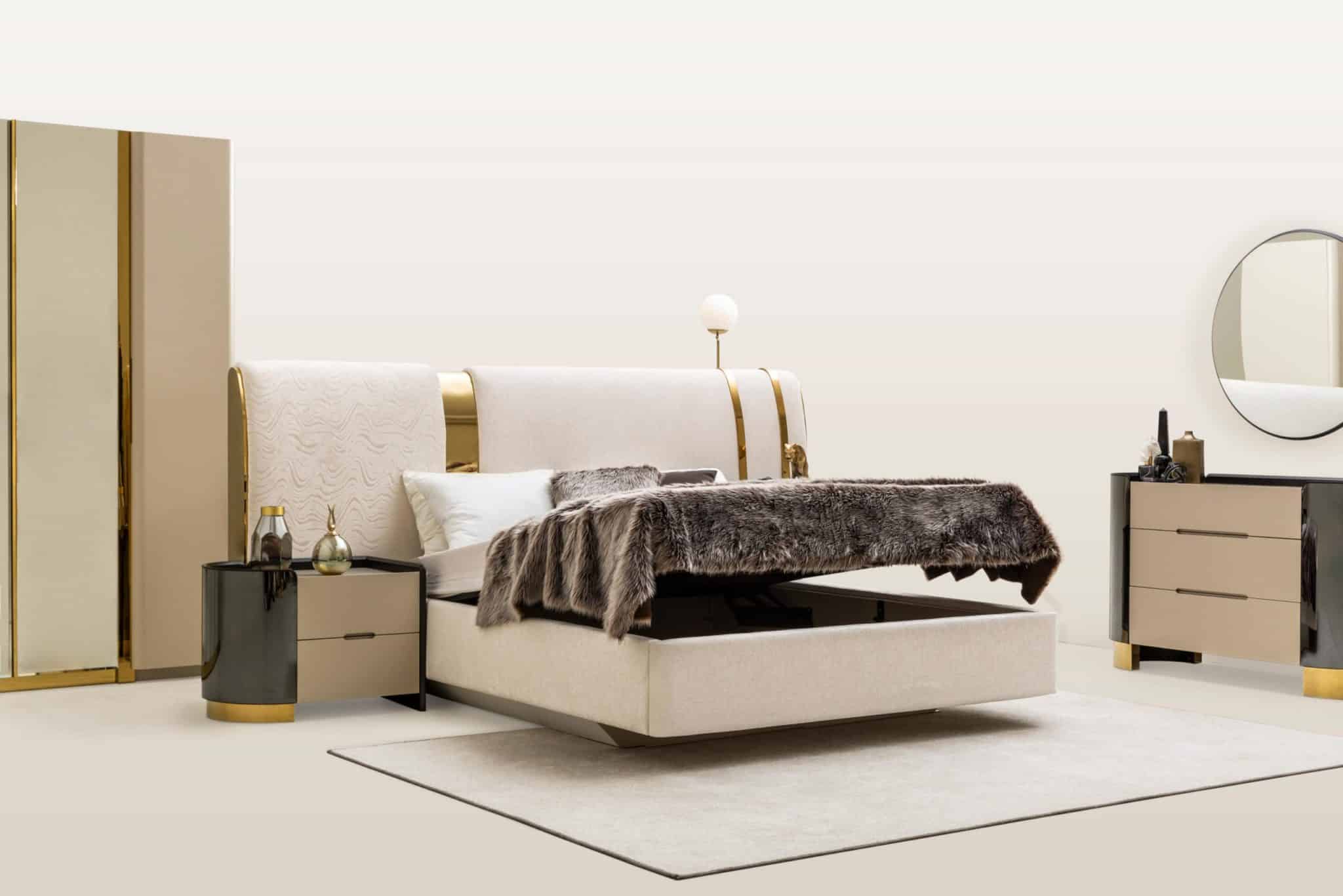 Sirius éjjeliszekrény – ekrű szín & arany