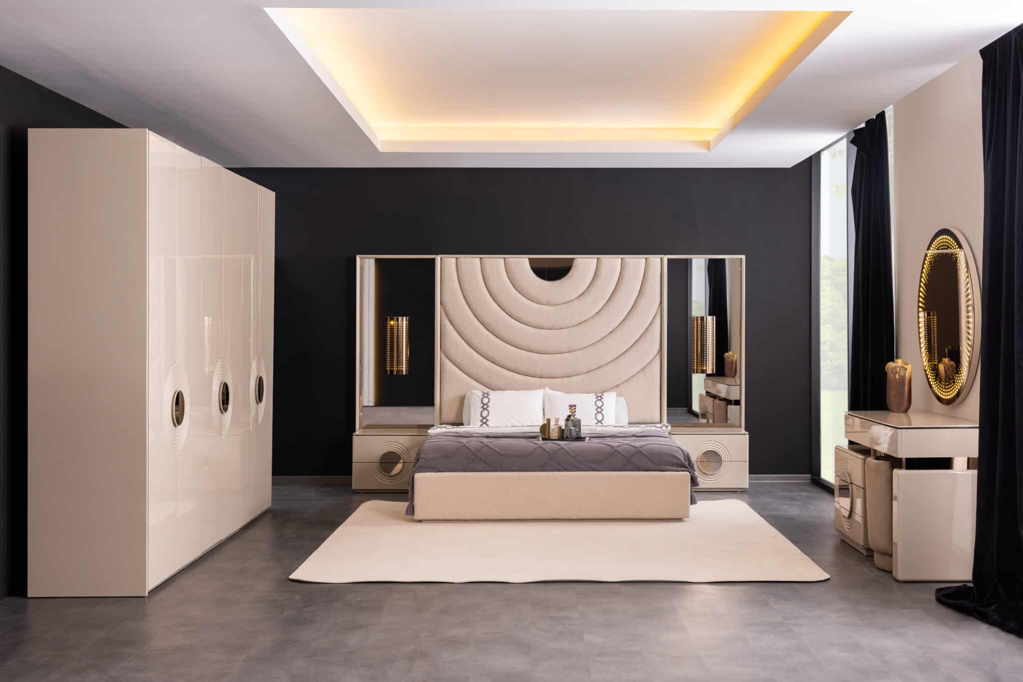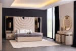 Panamera franciaágy + falpanel – bézs & arany