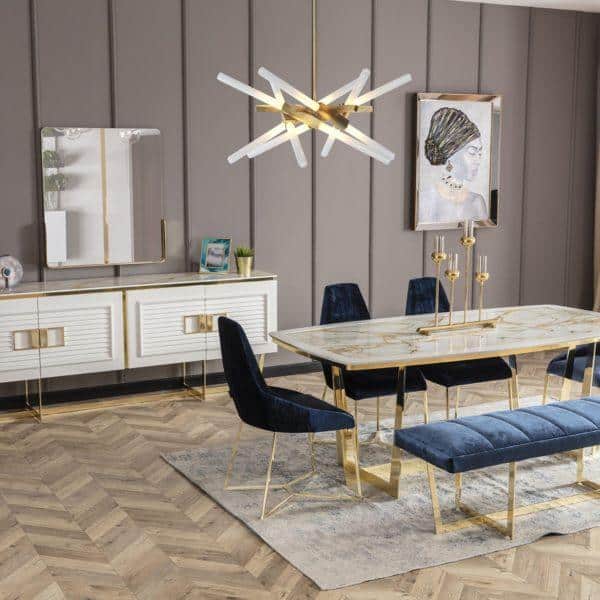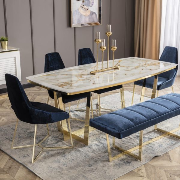 Aston étkezőasztal – fehér & arany, 200 cm