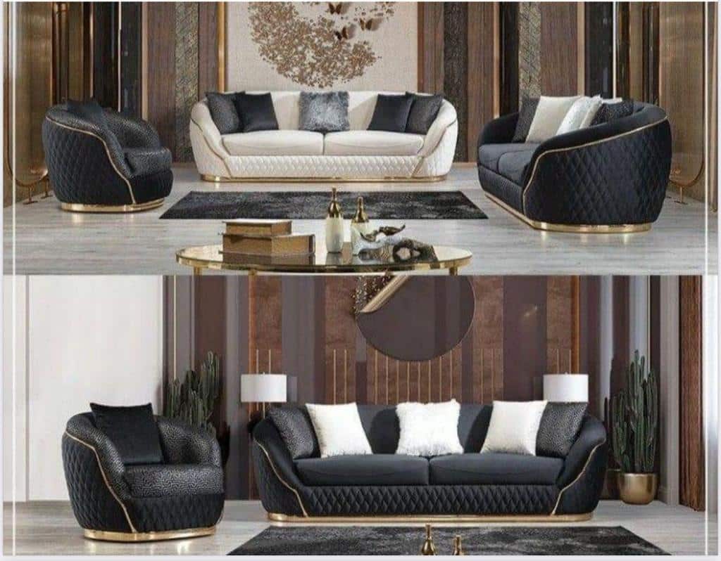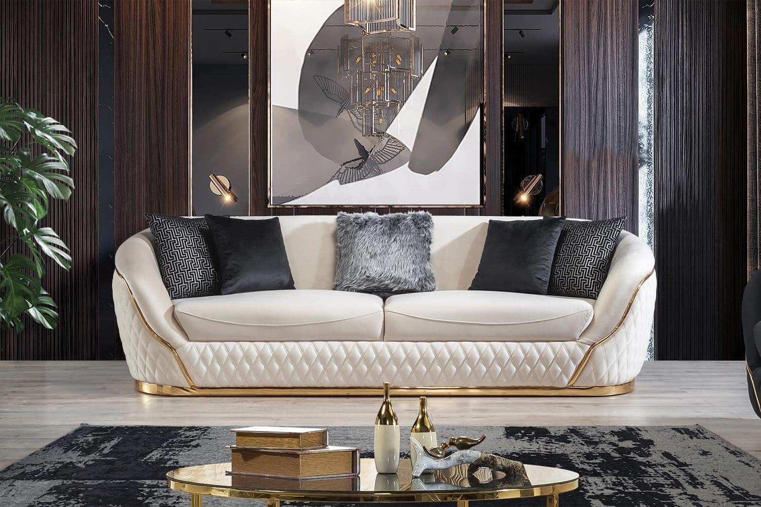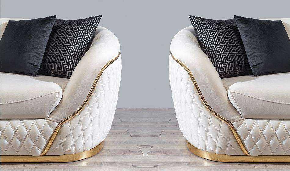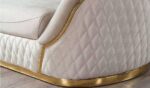 Bézs bársony kárpit és arany láb. Párnák tartozékok, viszont nem minden esetben egyezik meg a képen lévővel. Kárpit színben is lehetnek színbeli eltérések a képhez képest.