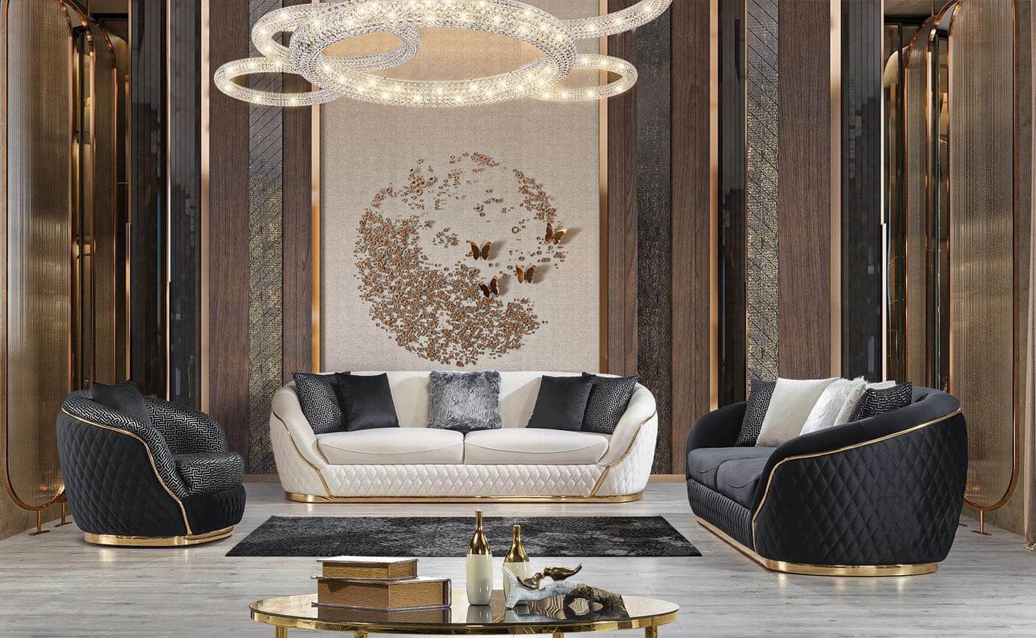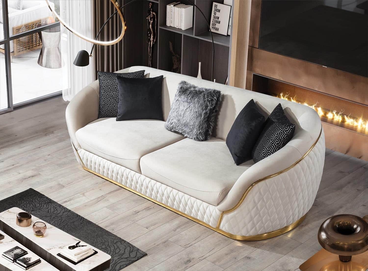 My Lion kanapé galambszürke & arany – háromszemélyes