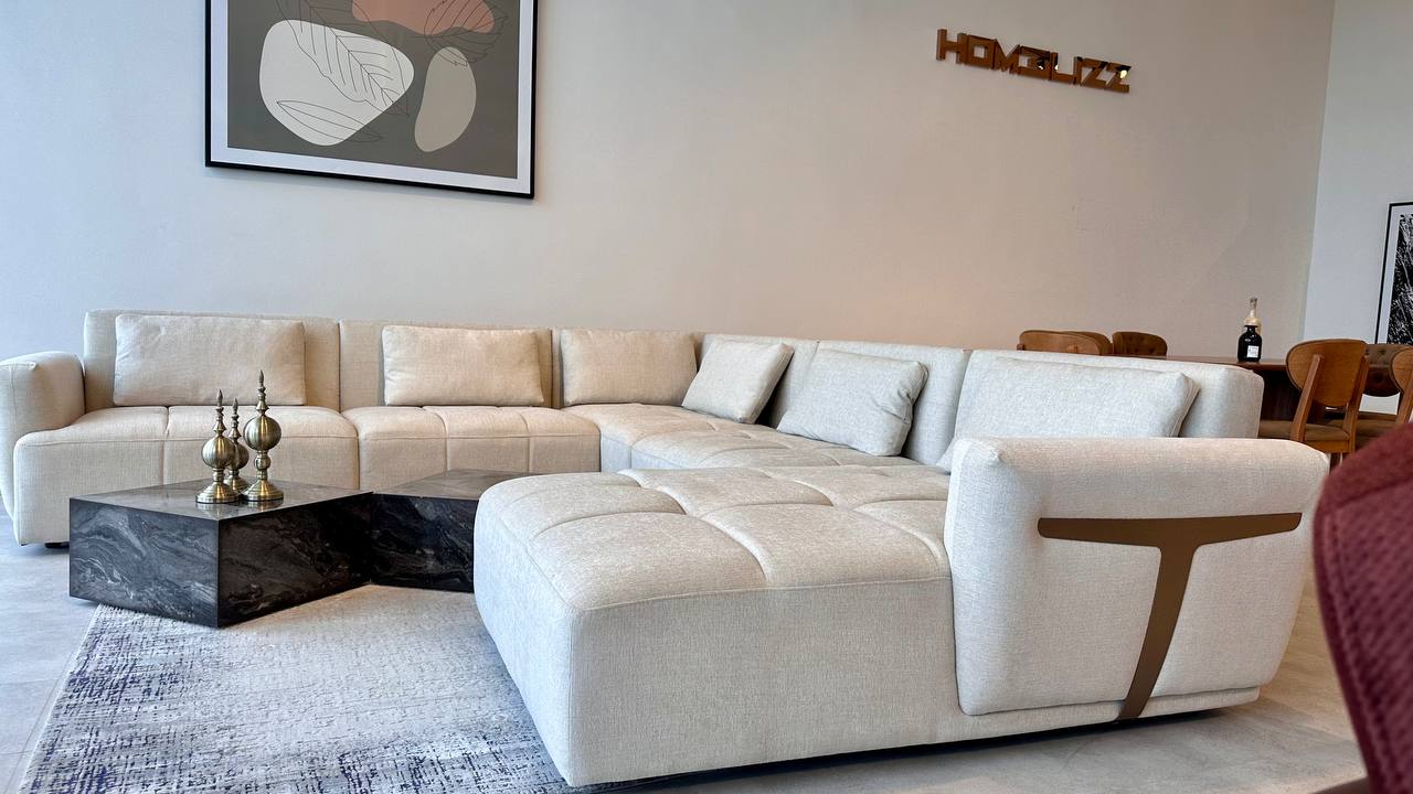Firenze “L” alakú ülőgarnitúra – krém és arany, kiállított