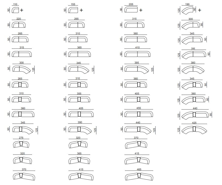 Coco moduláris kanapé. A párnák tartozékok. Választható szövettel.