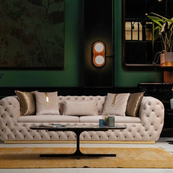 Empirio chesterfield háromszemélyes kanapé – BÉZS & arany
