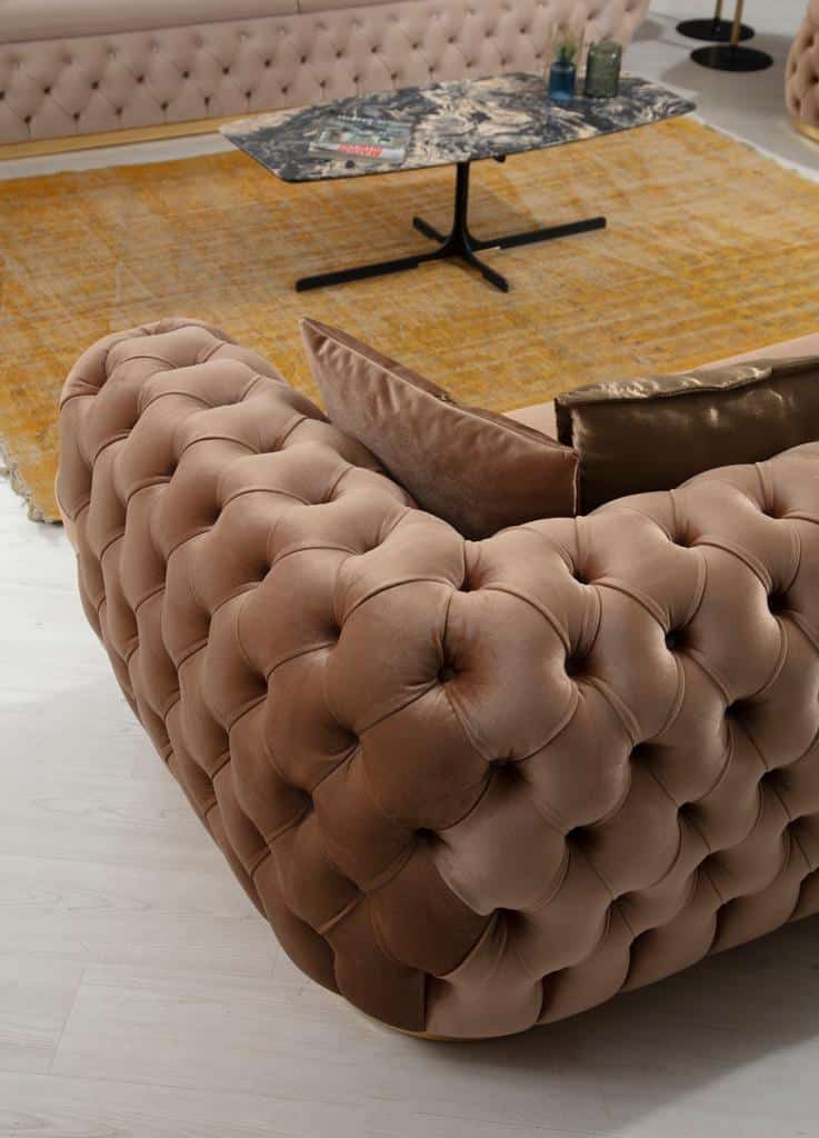 Empirio chesterfield háromszemélyes kanapé – Latte -világosbarna & arany