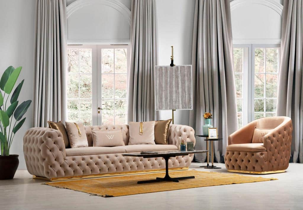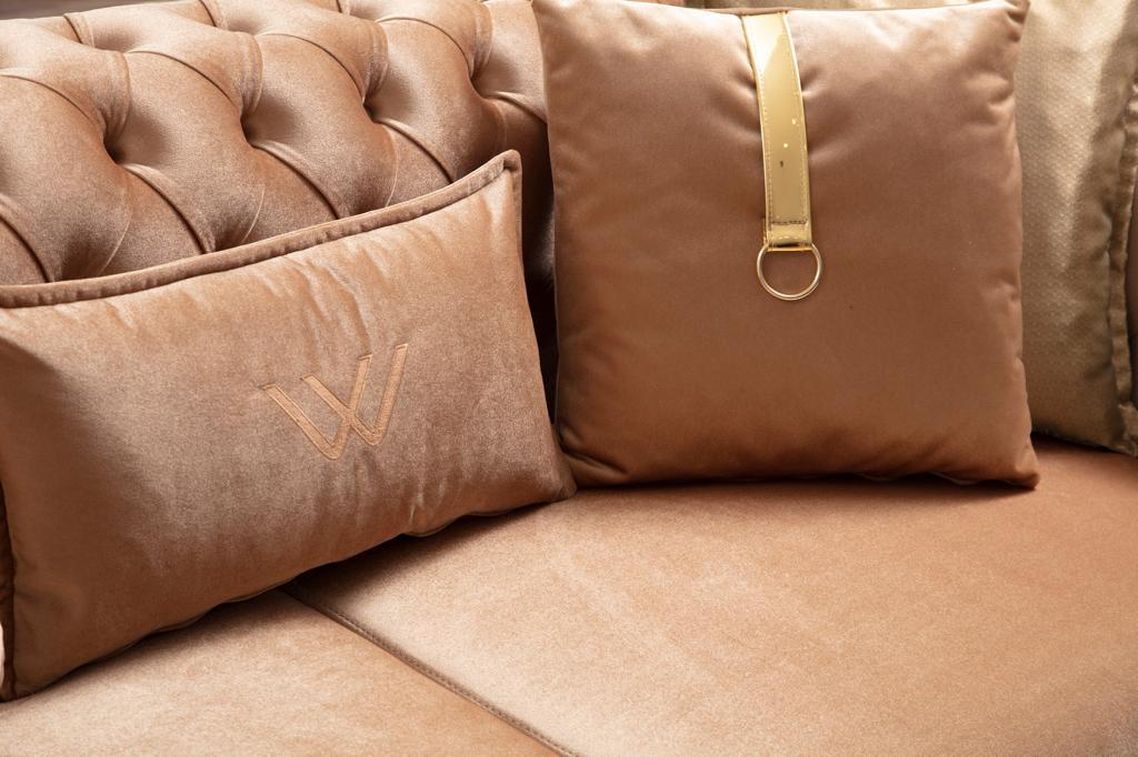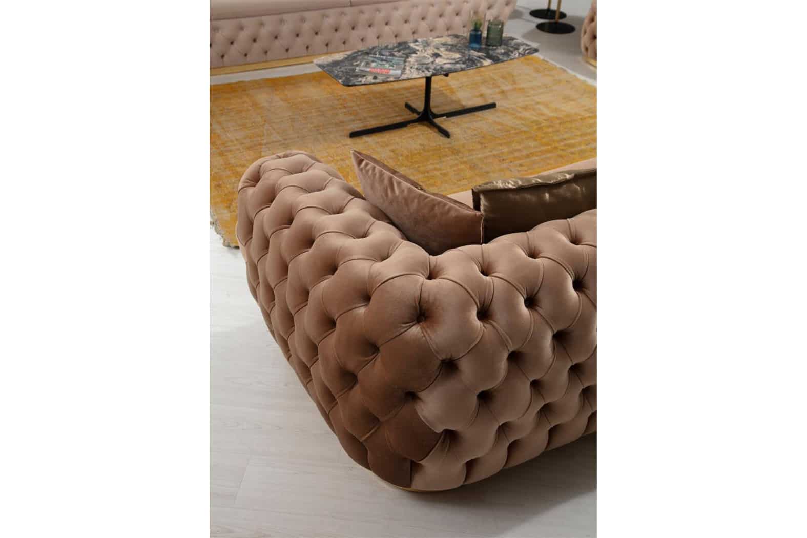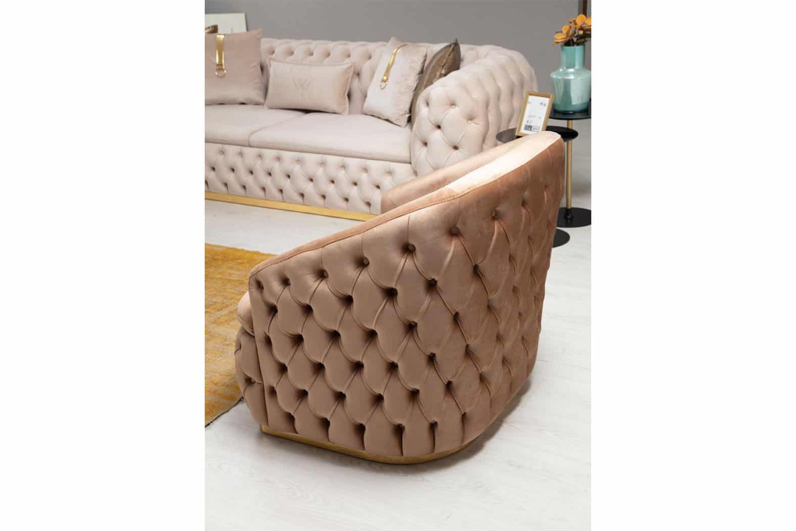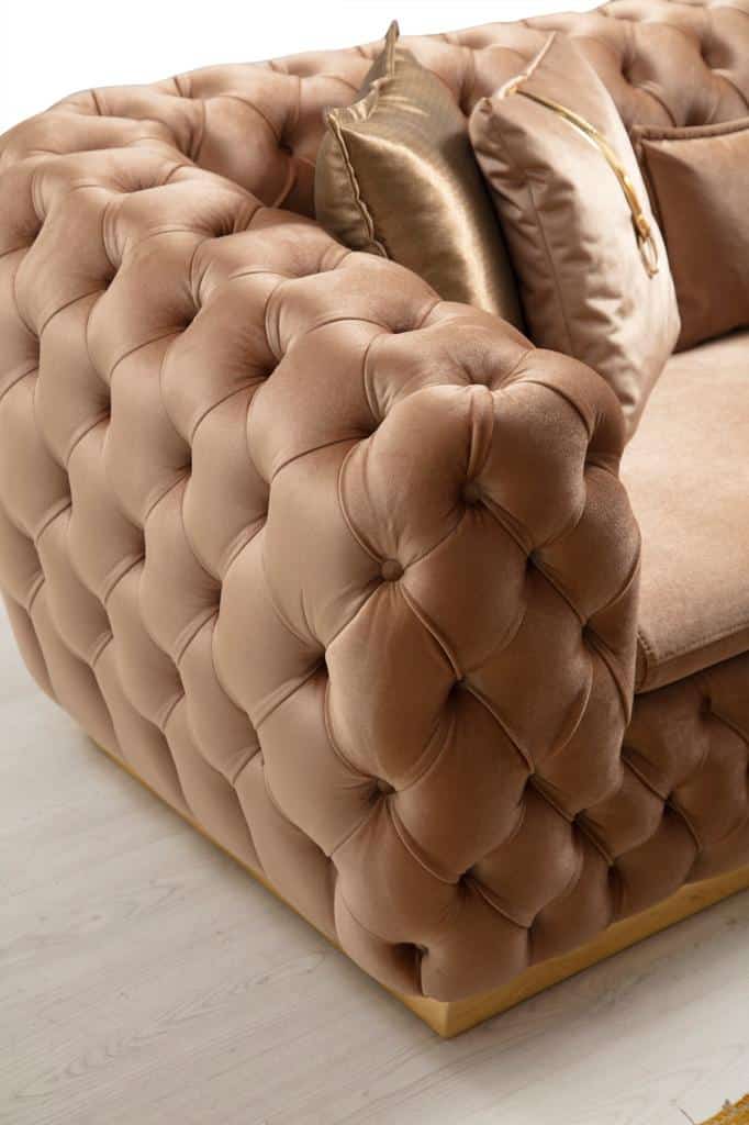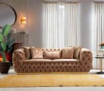 Empirio chesterfield háromszemélyes kanapé – Latte -világosbarna & arany