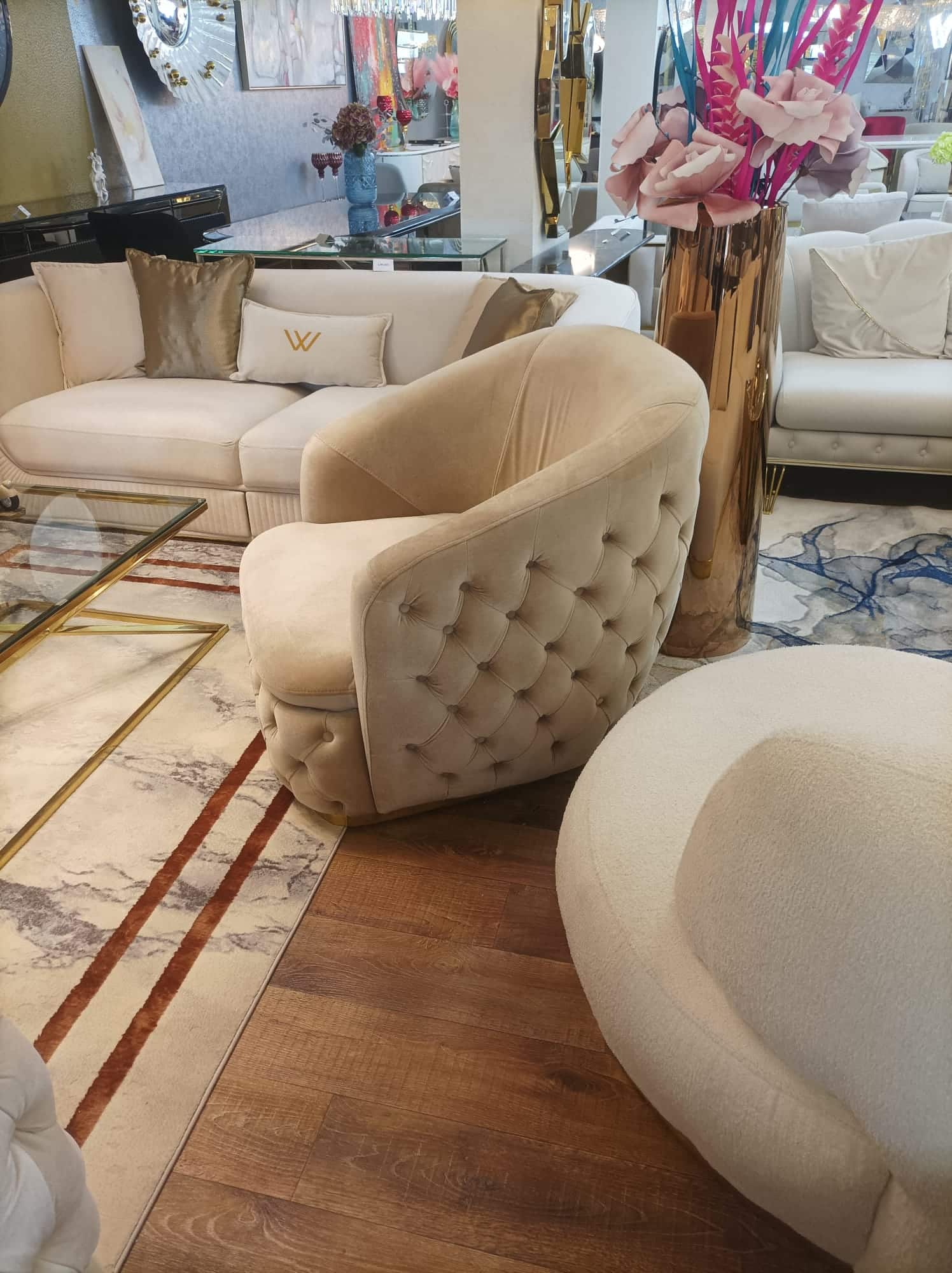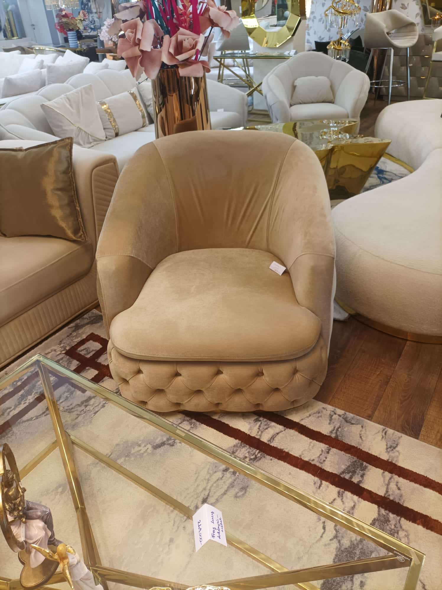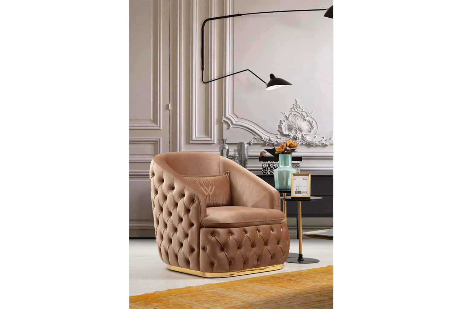 Empirio chesterfield fotel - Latte világosbarna & arany 299,000 Ft