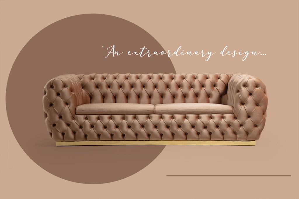 Empirio chesterfield négyszemélyes kanapé – BÉZS & arany