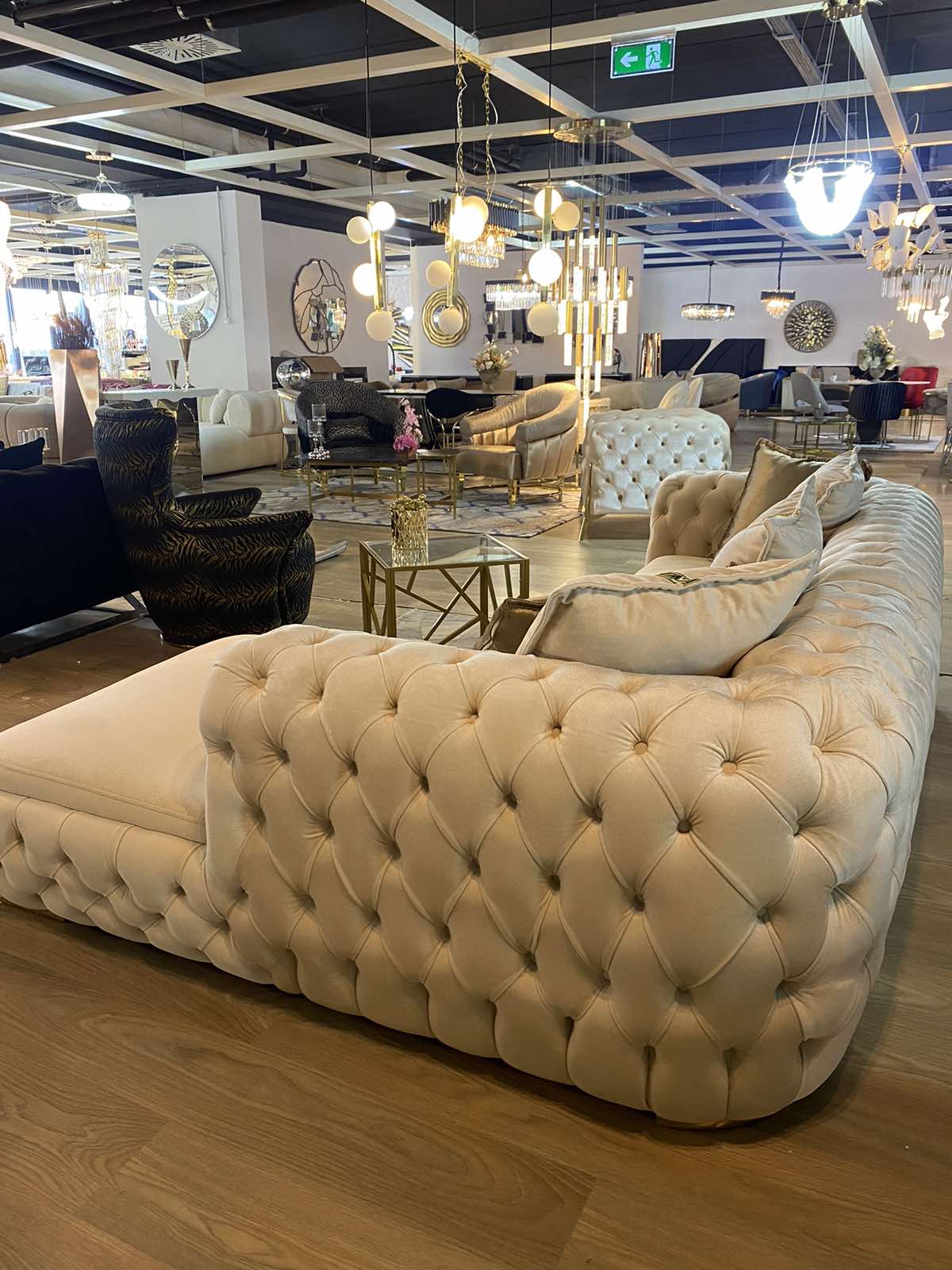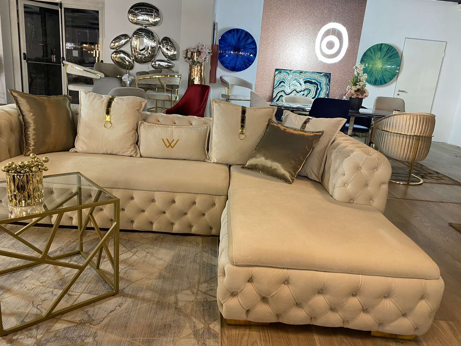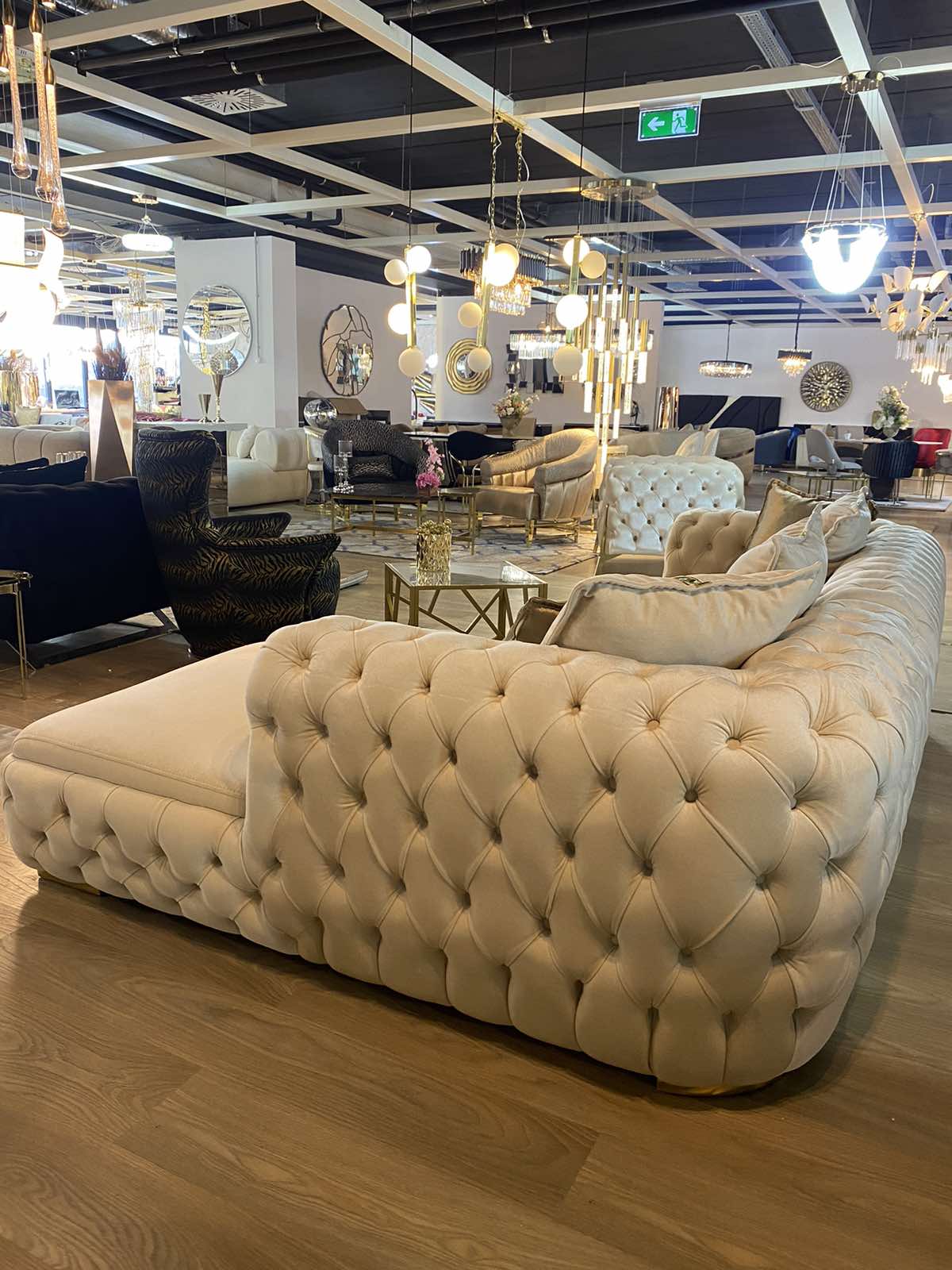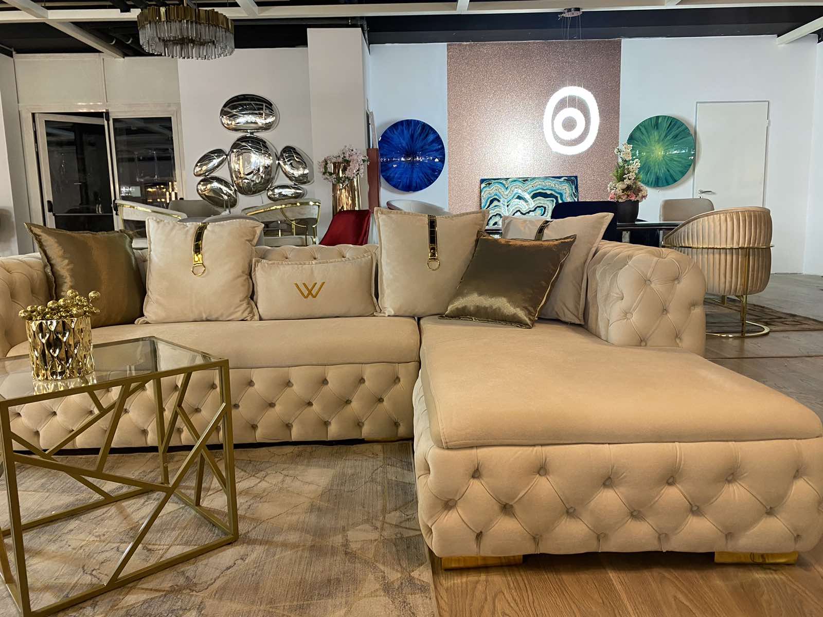 Empirio chesterfield L alakú ülőgarnitúra – bézs&arany színben