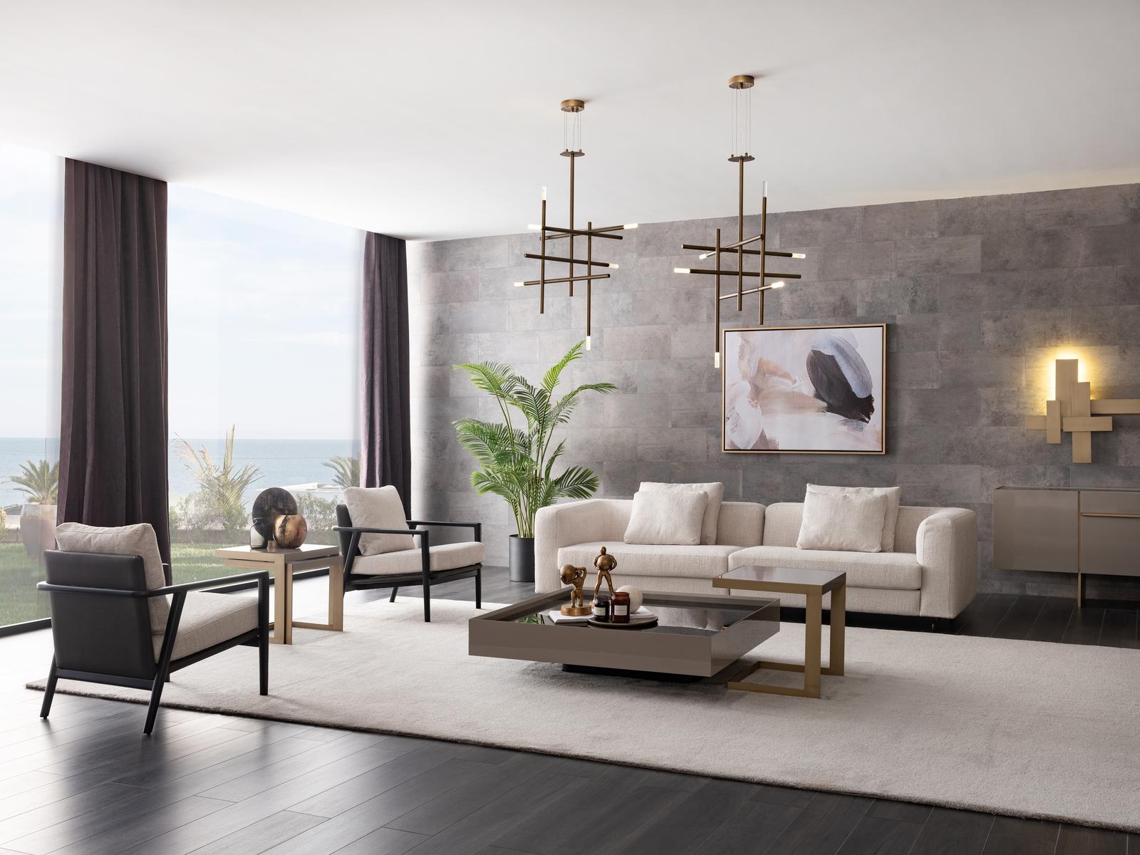 Eva szögletes dohányzóasztal, magasfényű bézs