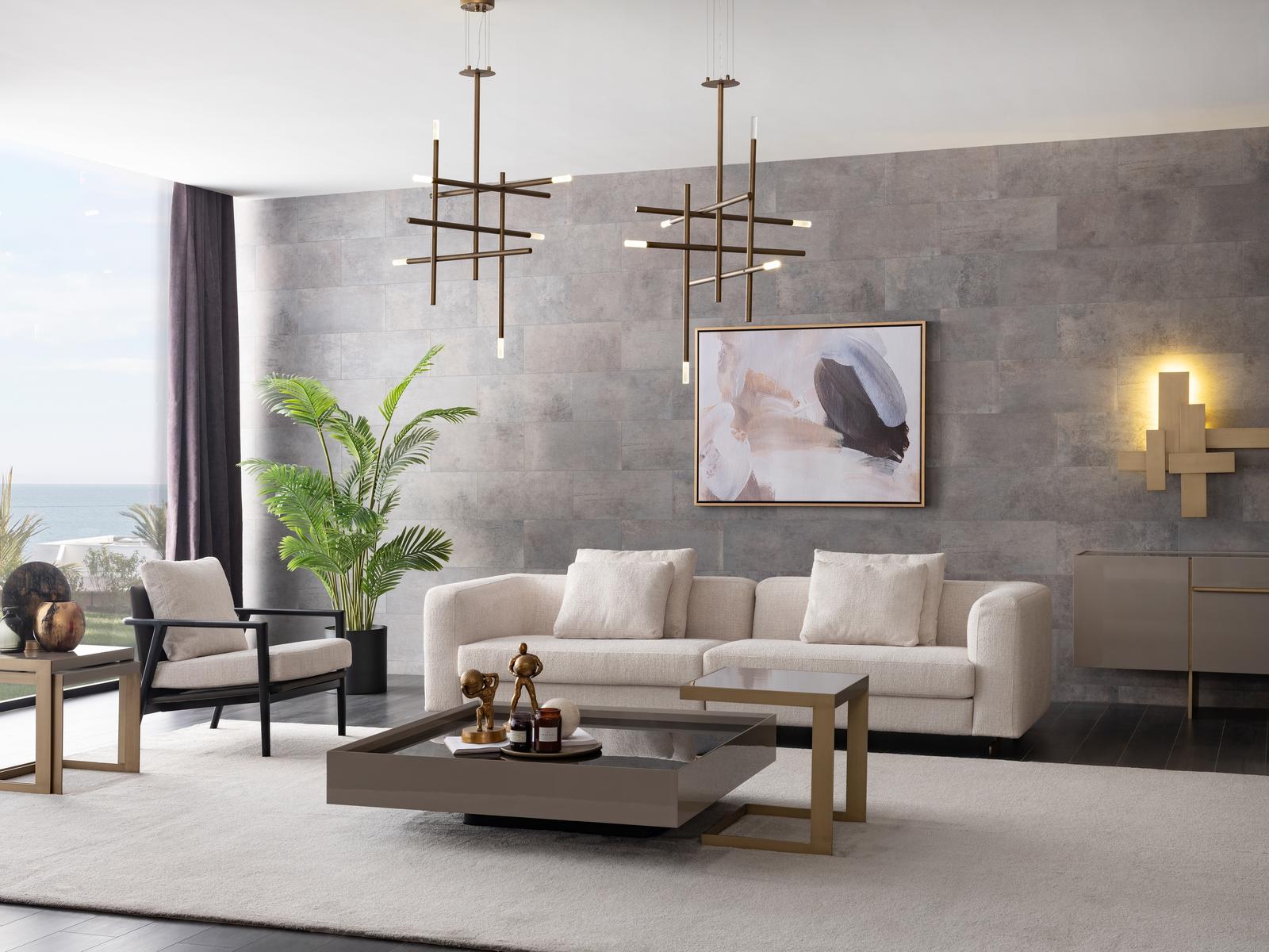 Eva lerakóasztal szett, 2 db, magasfényű bézs, szálcsiszolt arany