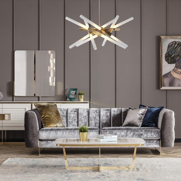 • Glória háromszemélyes kanapé- ezüst színű bársony & arany láb 669,000 Ft